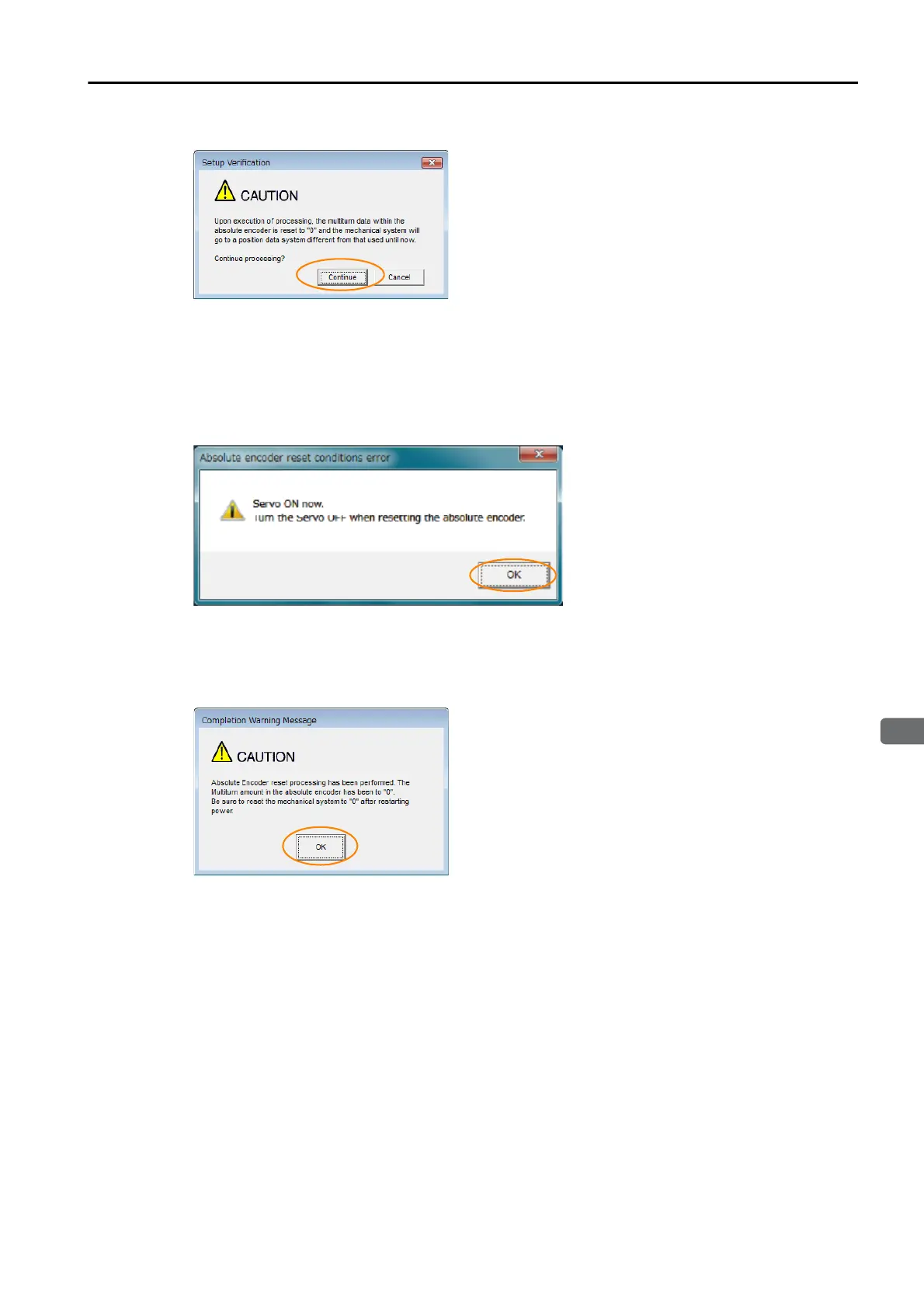 The following dialog box will be displayed when the absolute encoder has been reset.