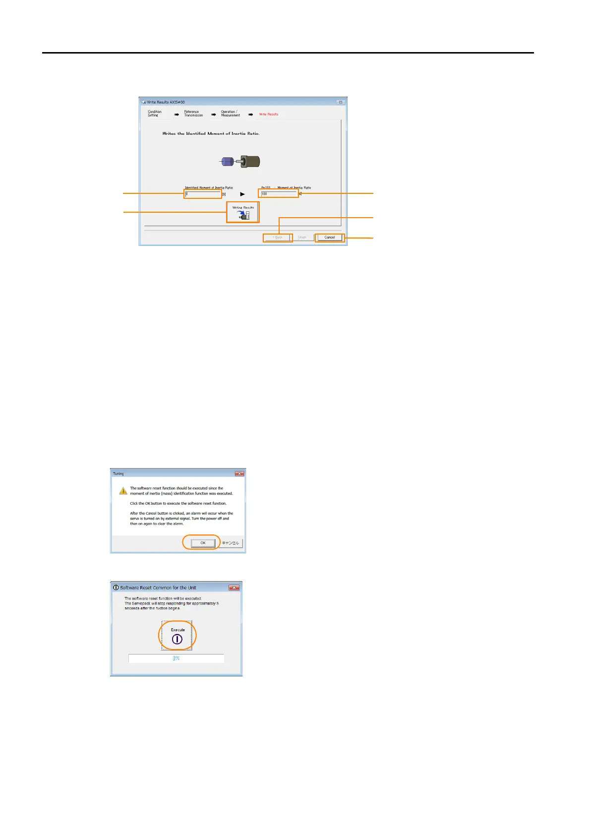 If you click this button, Pn103 (Moment of Inertia Ratio) in the SERVOPACK is set to the