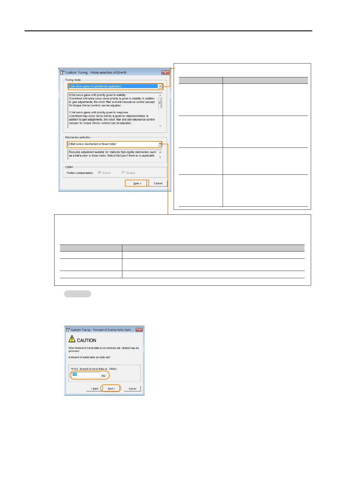 Set the Tuning mode Box and Mechanism selection Box, and then click the Next But-