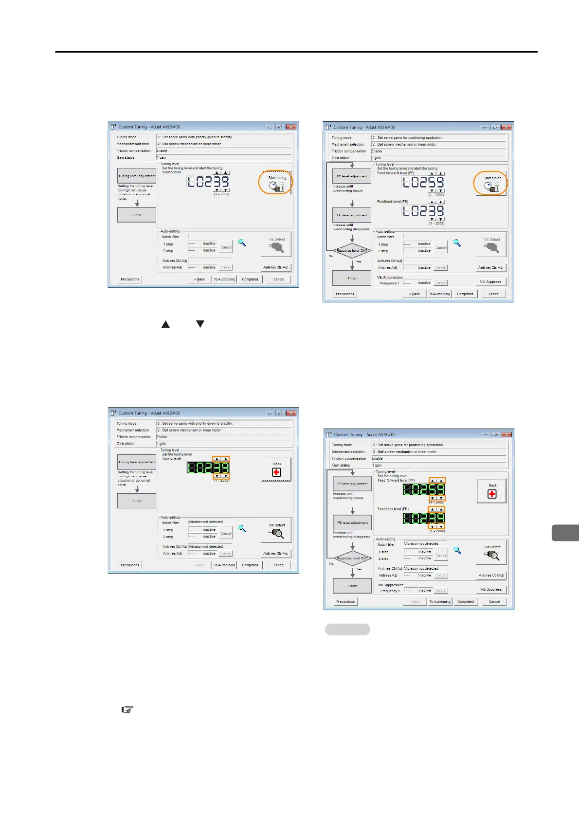 You can set the functions to suppress vibration (notch filters, automatic anti-resonance