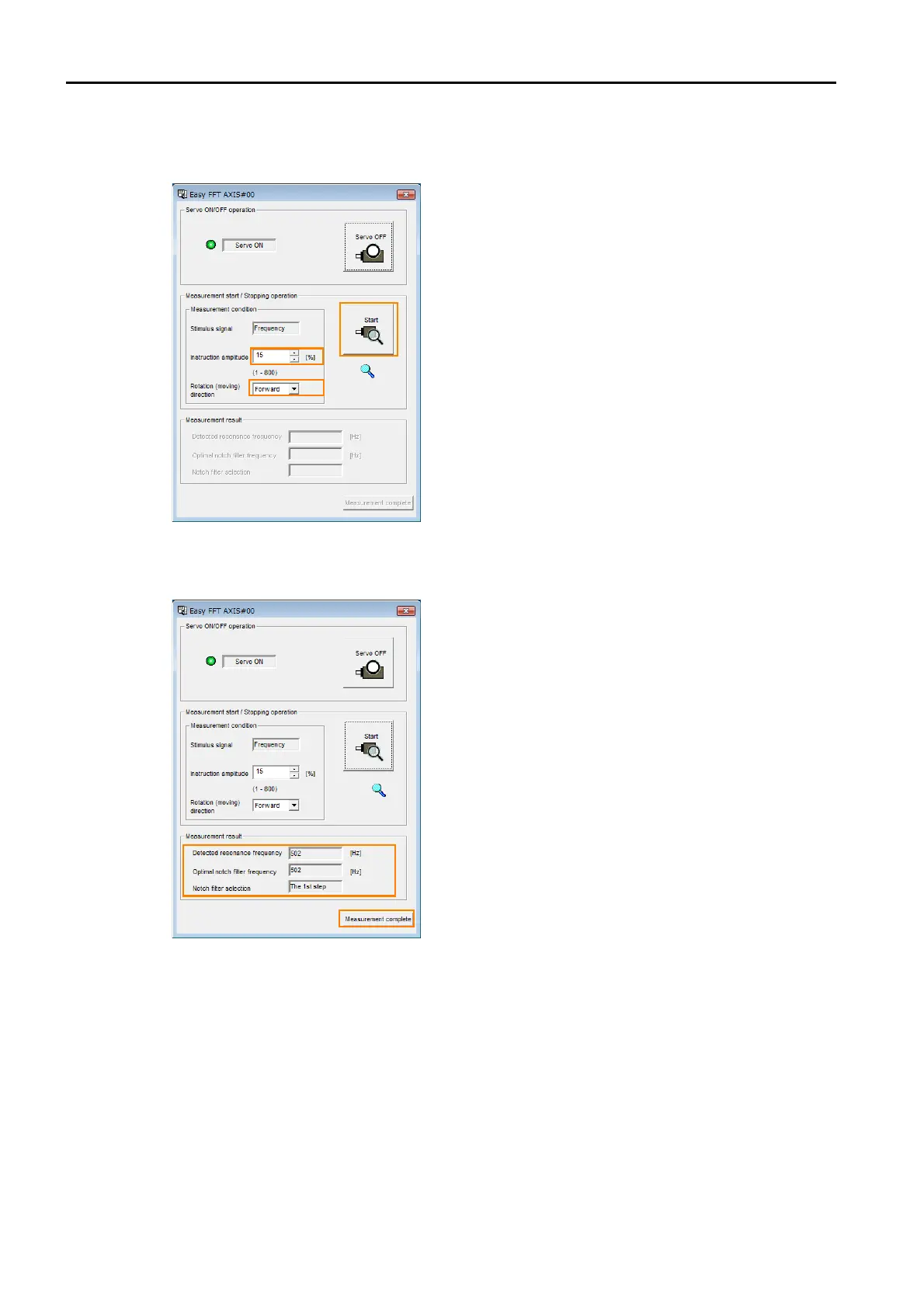 Select the instruction (reference) amplitude and the rotation direction in the Measure-
