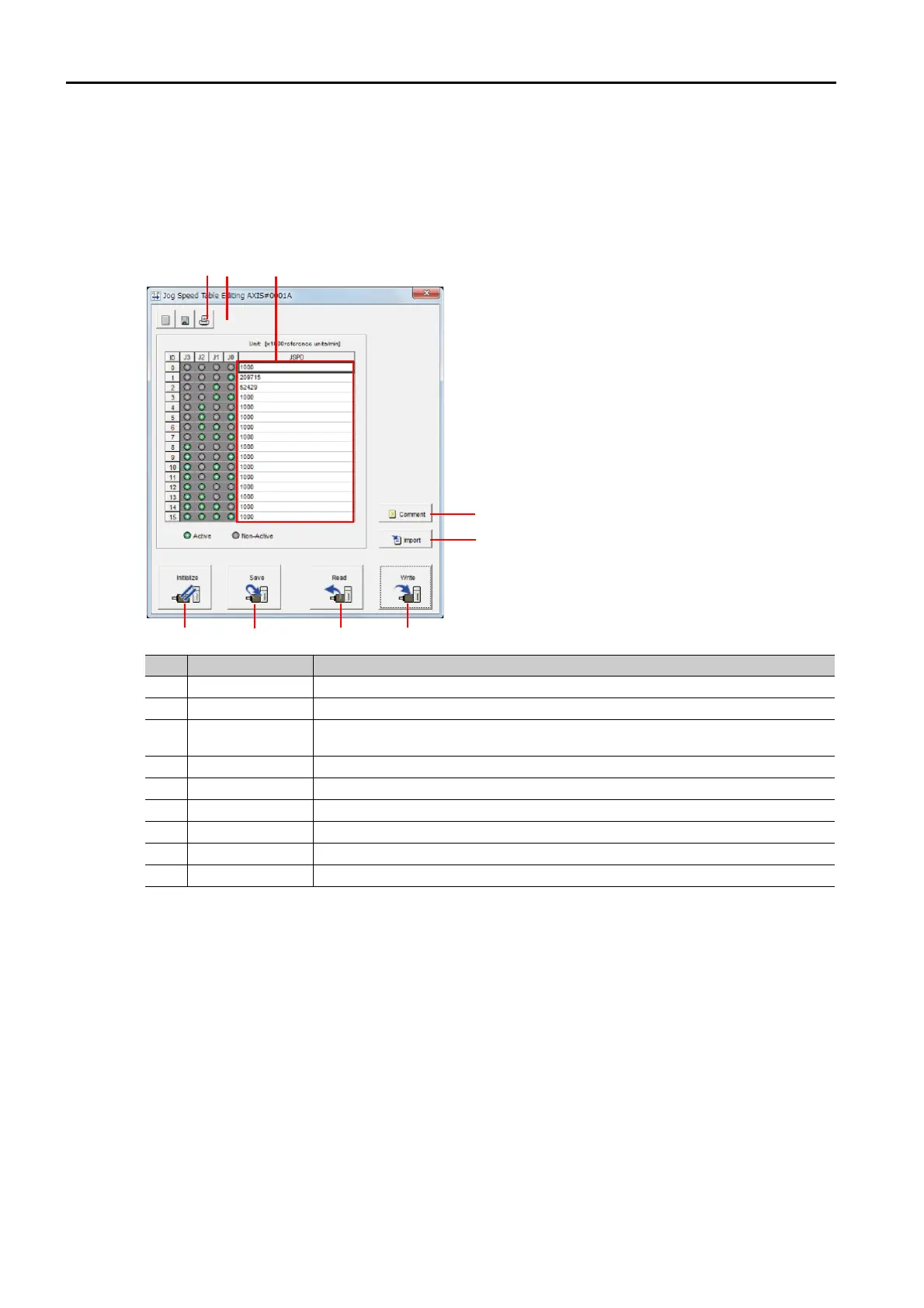 Import Button Imports a jog speed table from a file saved on the computer to the SigmaWin+.