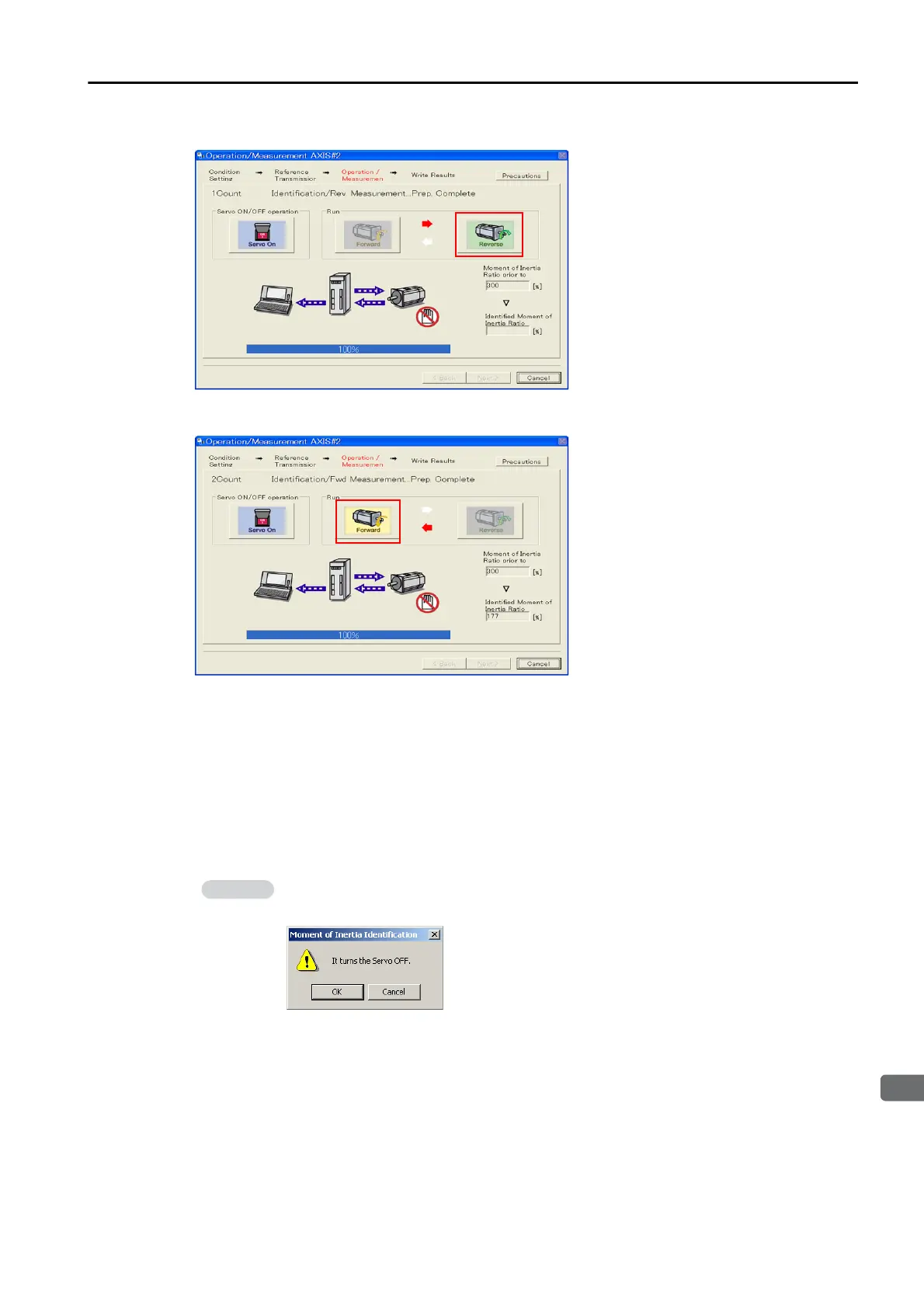 If you click the Next Button before you change to the SERVO OFF state, the following