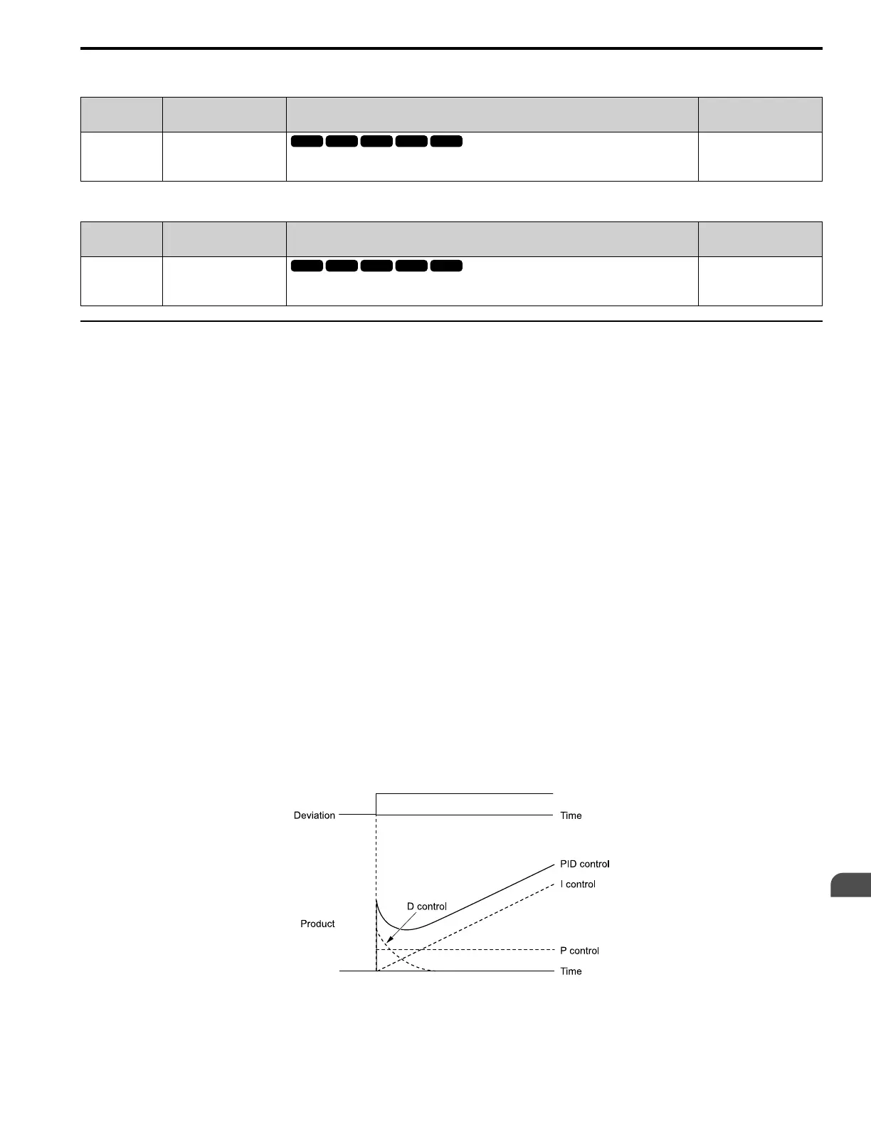 The drive has a PID control function. You can control drive output to adjust the proportional gain, integral time, and