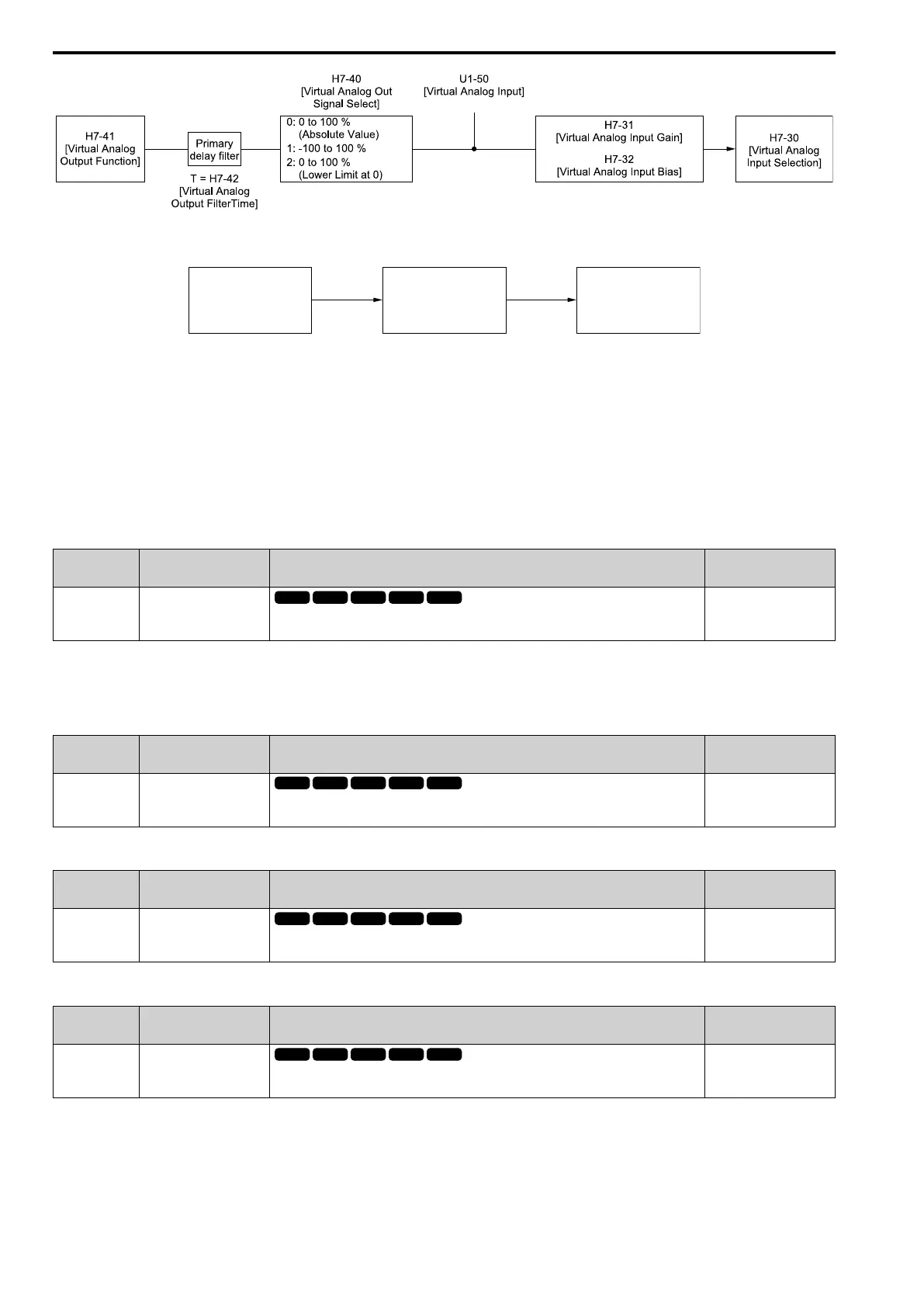 • If you do not use virtual I/O, set H7-01 to H7-04 = F. This does not support the through mode.