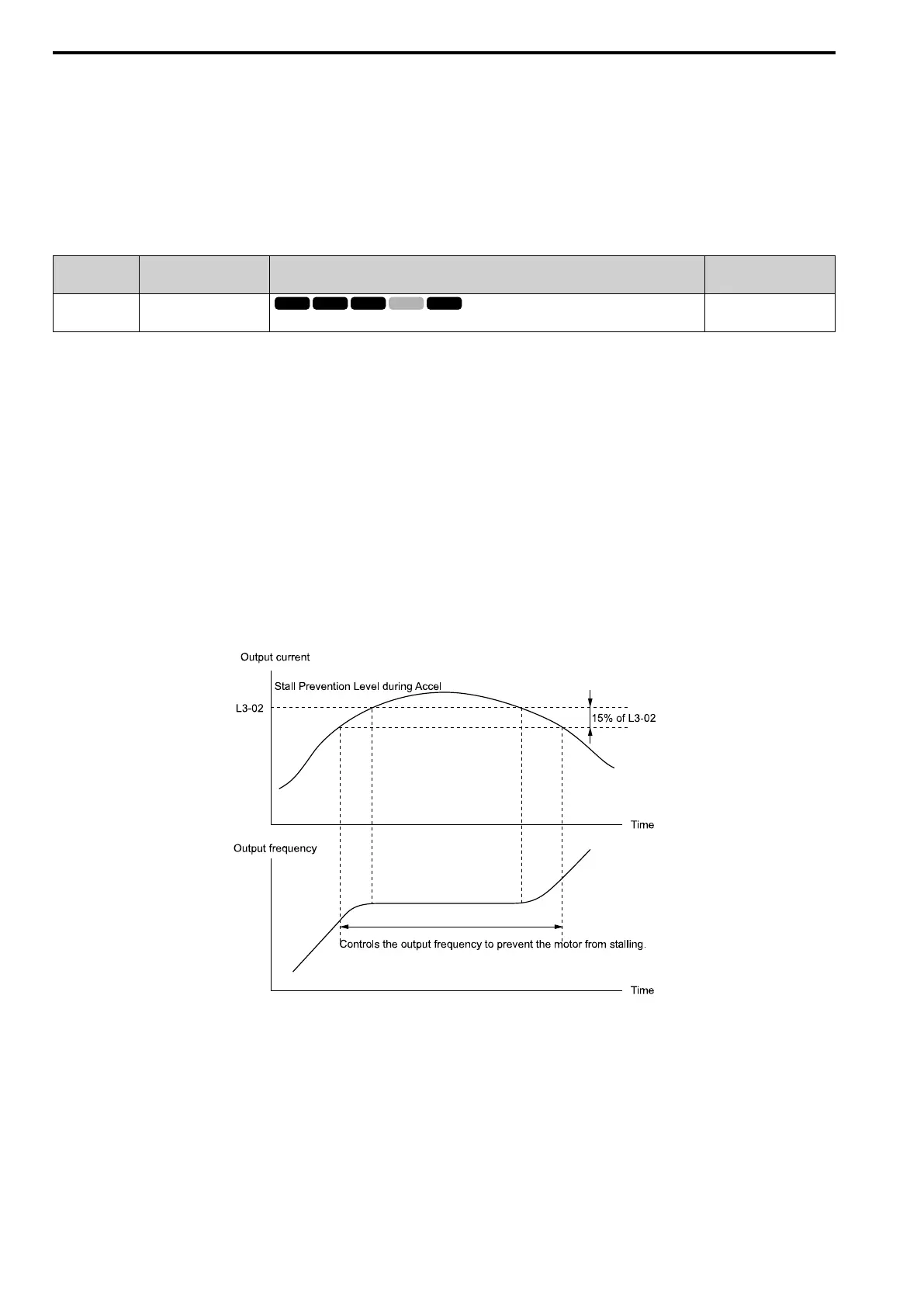 acceleration. The drive stops deceleration when the output current is less than L3-02 - 15%. The Stall