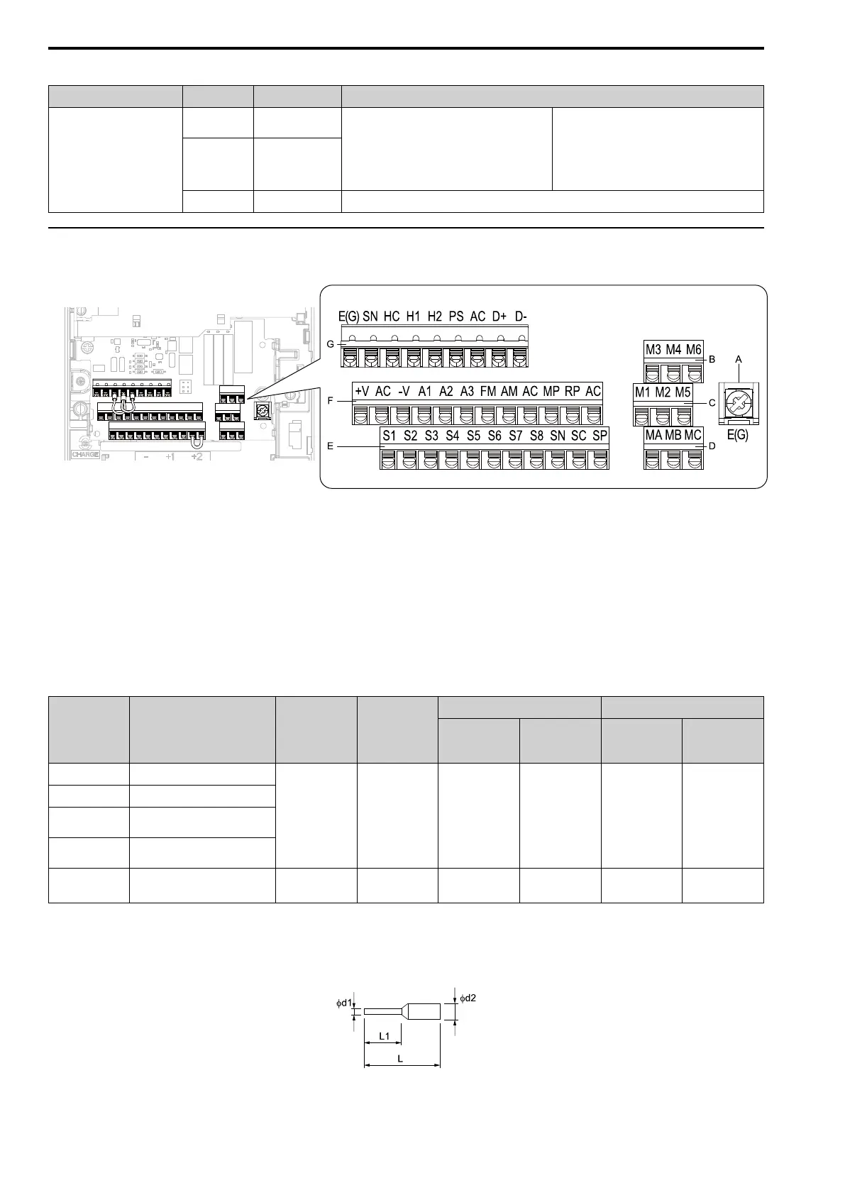 Use the tables in this section to select the correct wires. Use shielded wire to wire the control circuit terminal