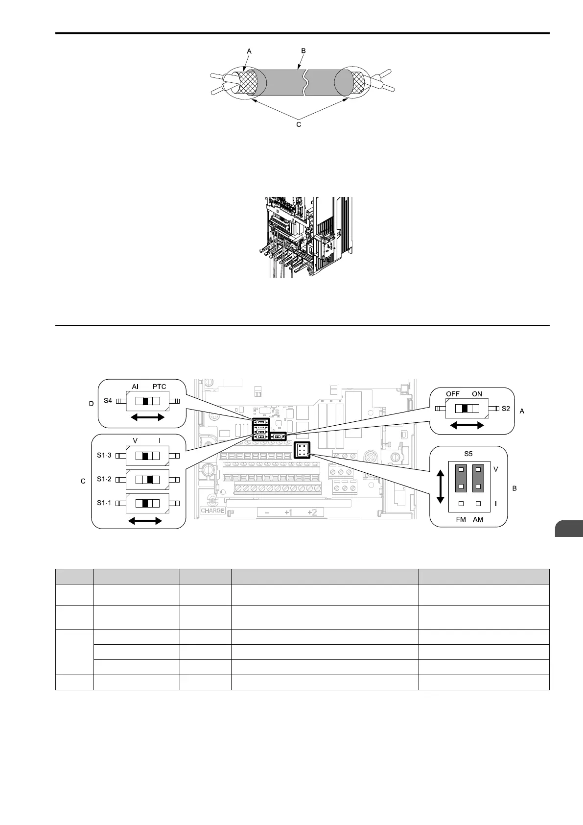 The terminal board has switches to adapt the drive I/Os to the external control signals as shown in Figure 3.46.