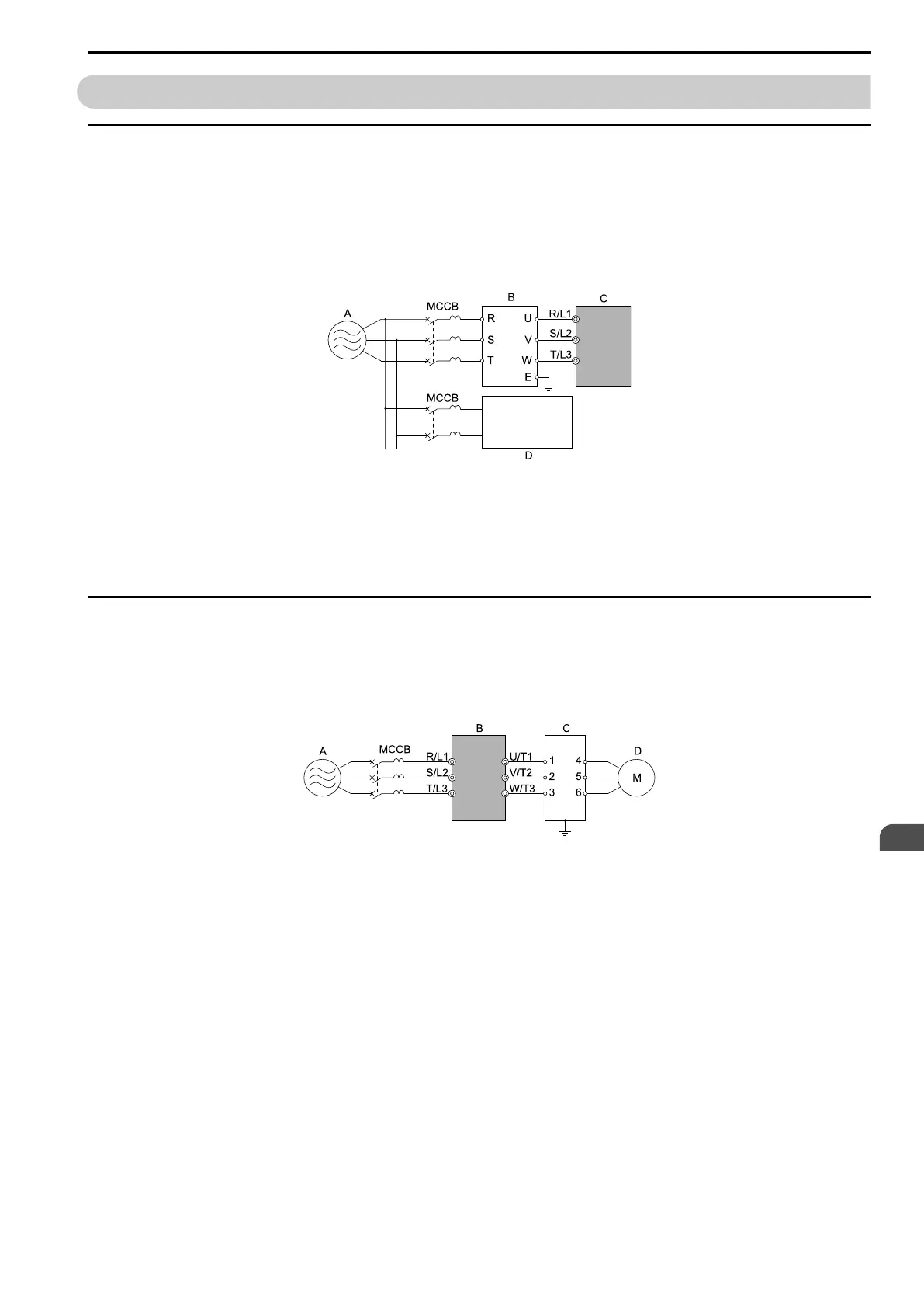 circuit. If you connect these devices to the output circuits, it can cause damage to the drive and connected equipment.