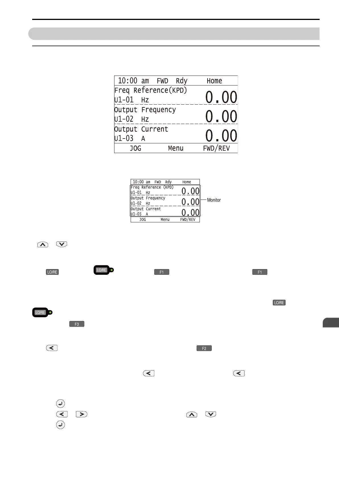 You can change the direction of motor rotation when operating the drive from the keypad. Push to illuminate