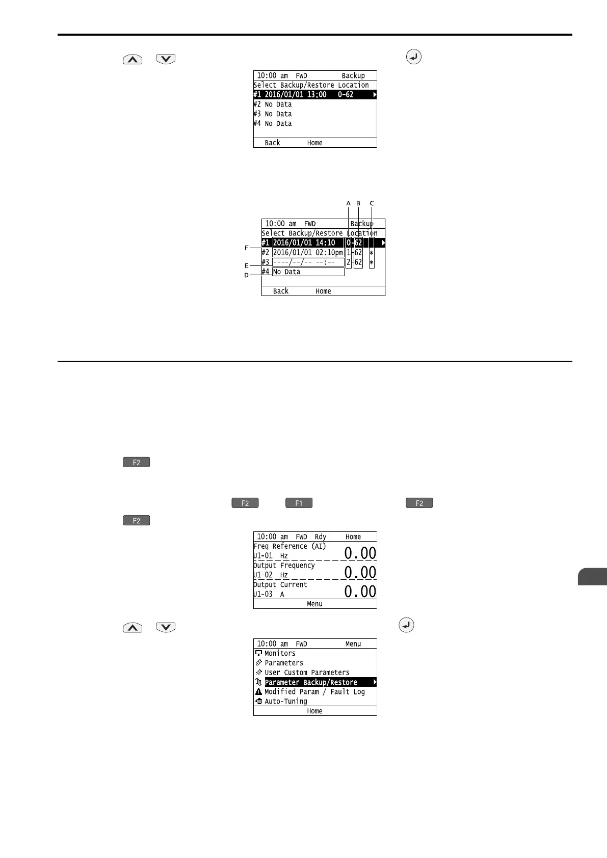 3. Push or to select [Parameter Backup/Restore], then push .