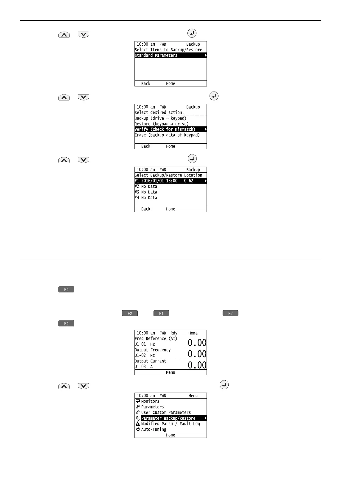 parameter settings copied to the drive. Push one of the keys to return to the screen in Step 6.