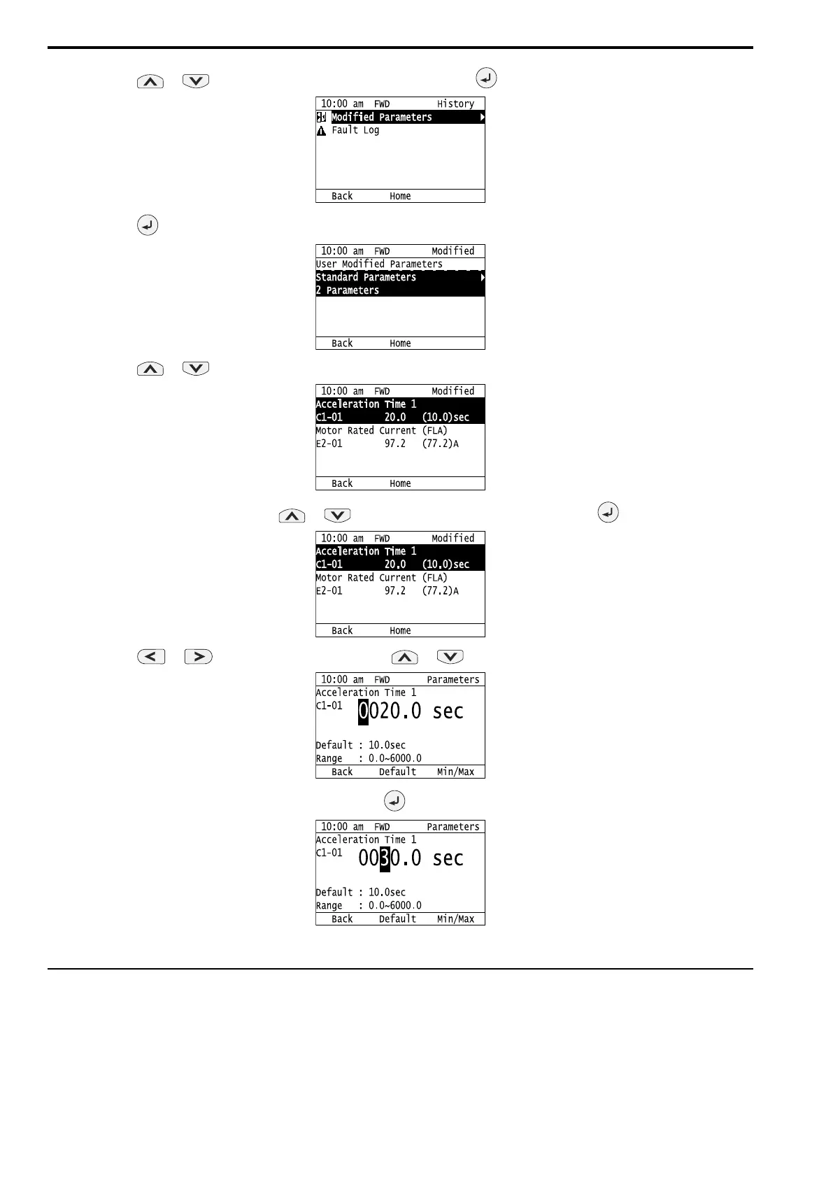 7. To re-edit a parameter, push or , select the parameter to edit, then push .