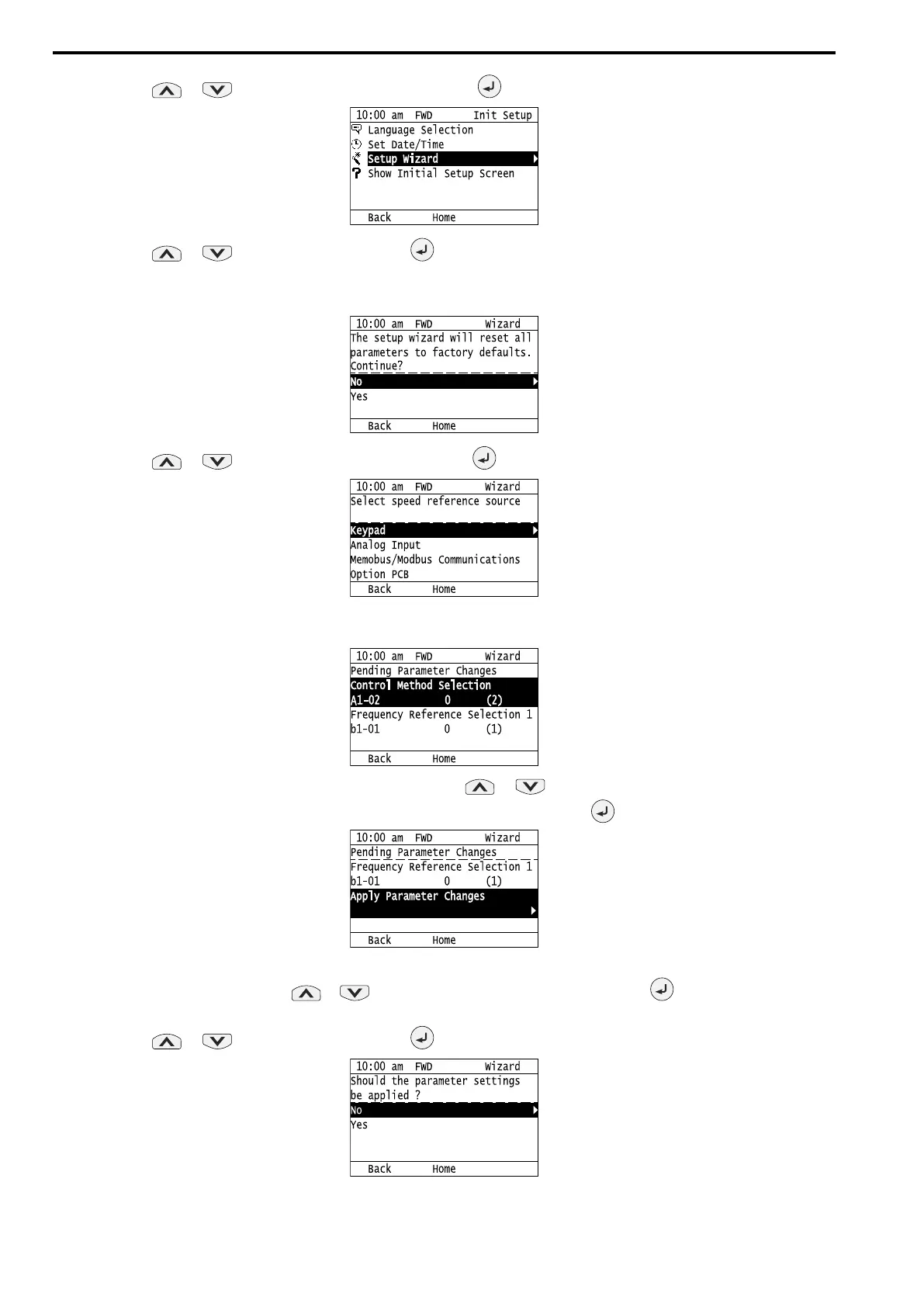 7. For the next steps, follow the instructions shown on the keypad until the “Parameter Change Confirmation
