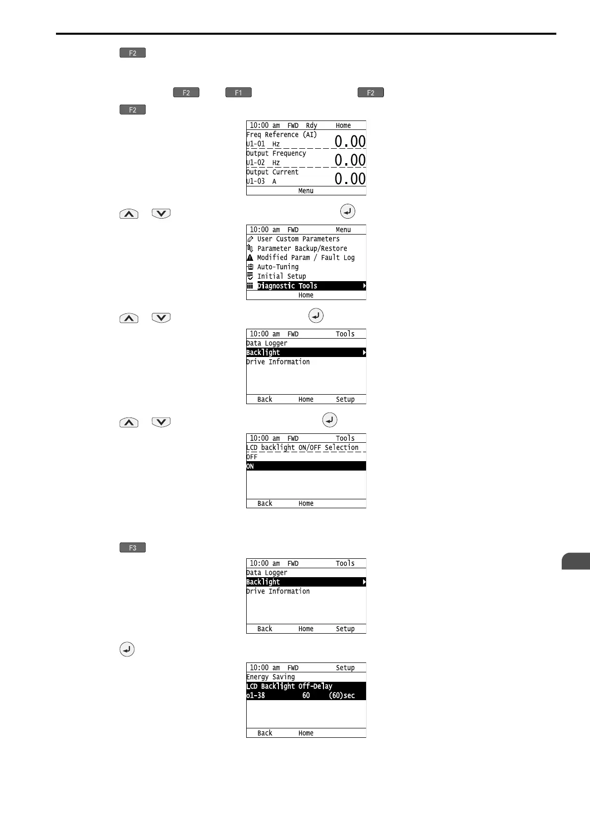 4. Push or to select [Backlight], then push .
