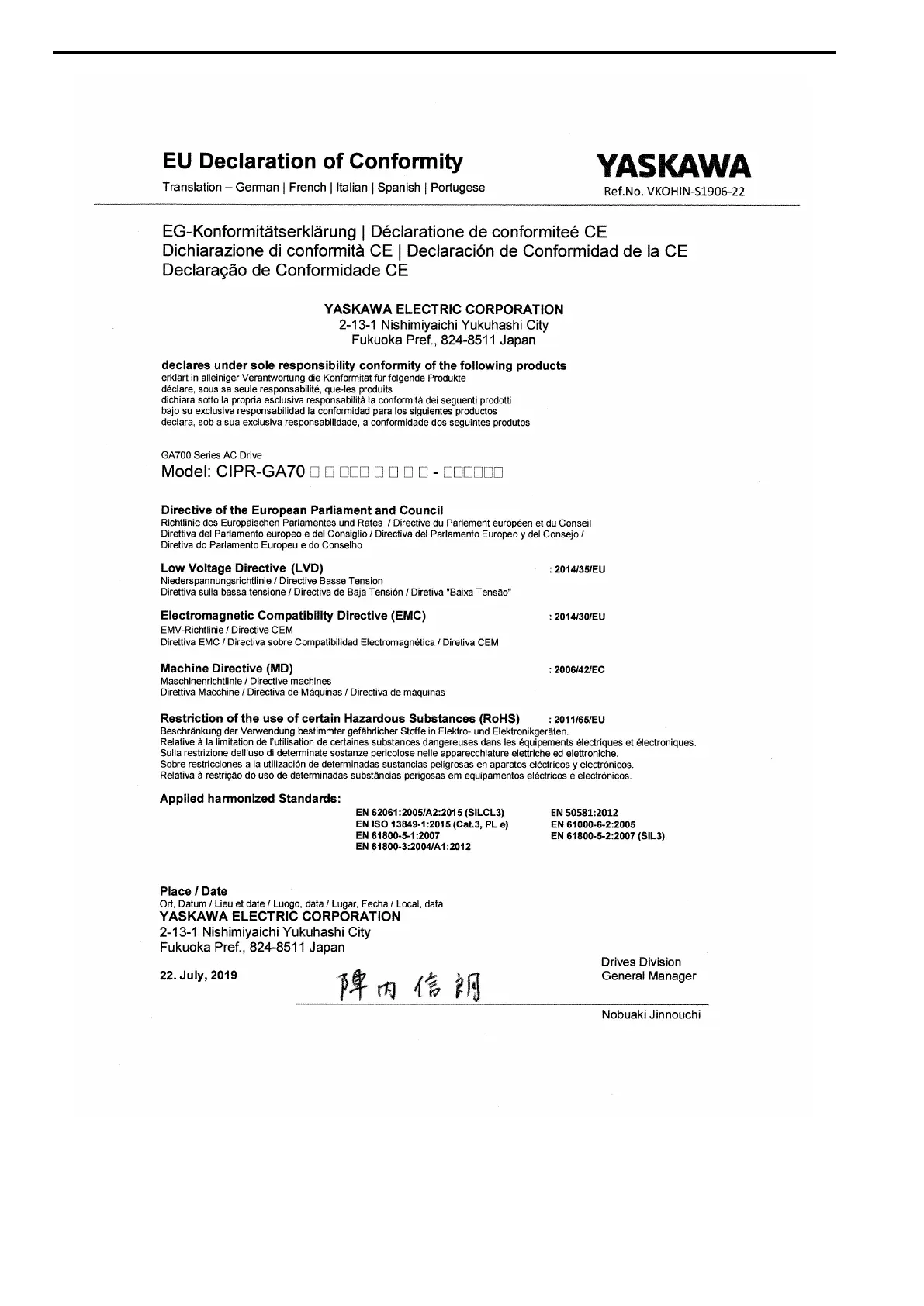 212 YASKAWA SIEPC71061705H GA700 Series Technical Manual