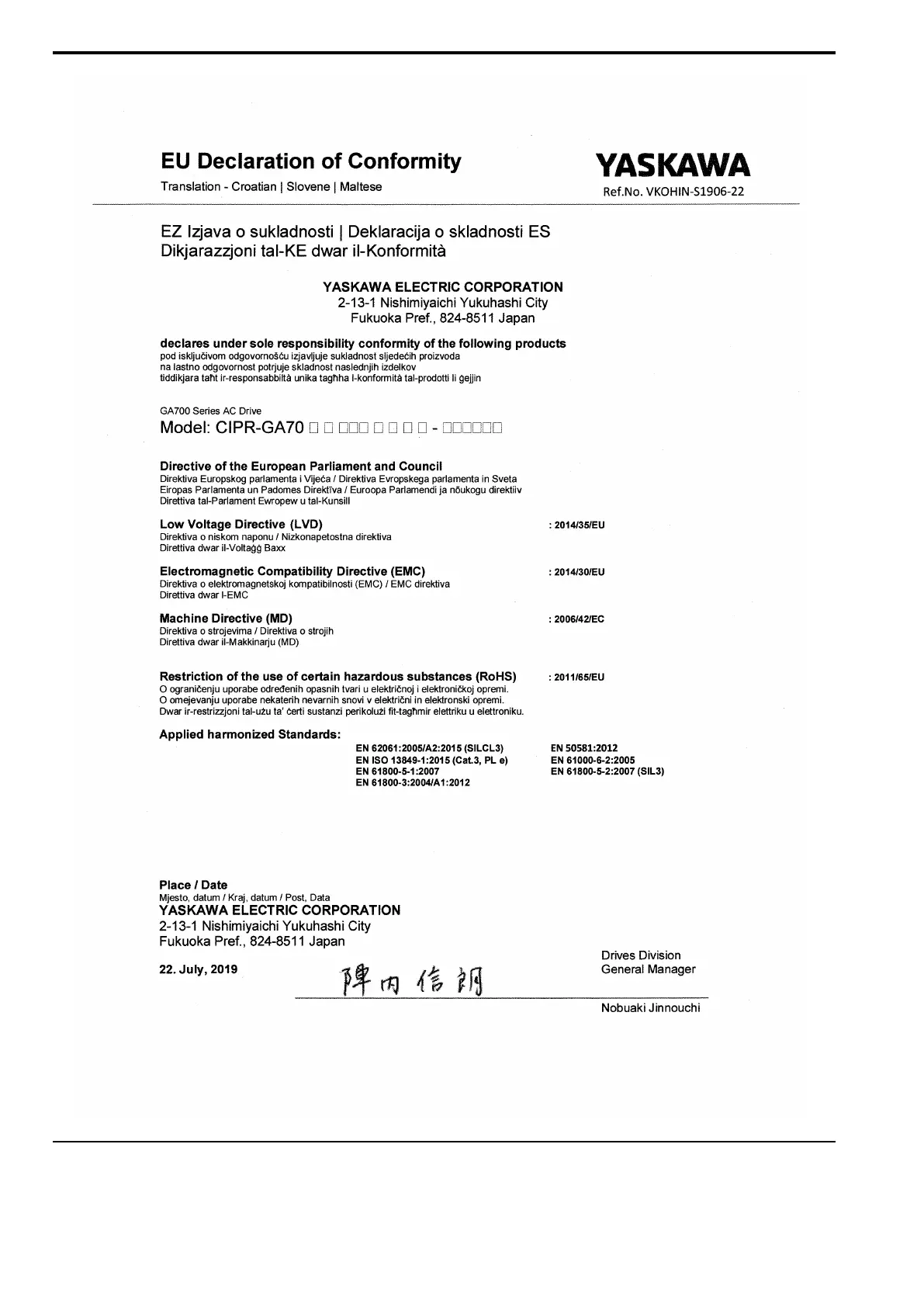 216 YASKAWA SIEPC71061705H GA700 Series Technical Manual