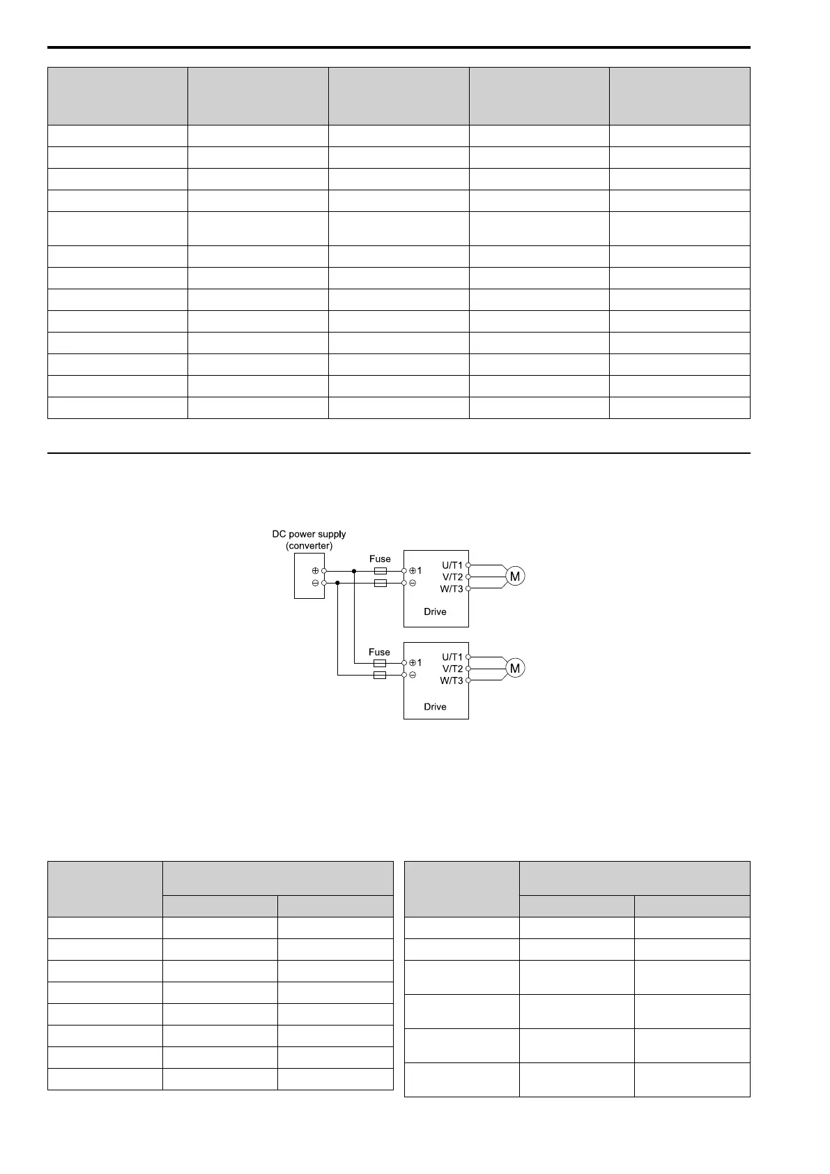 Figure 5.22 shows a wiring example for a DC power supply that has two drives connected in parallel.