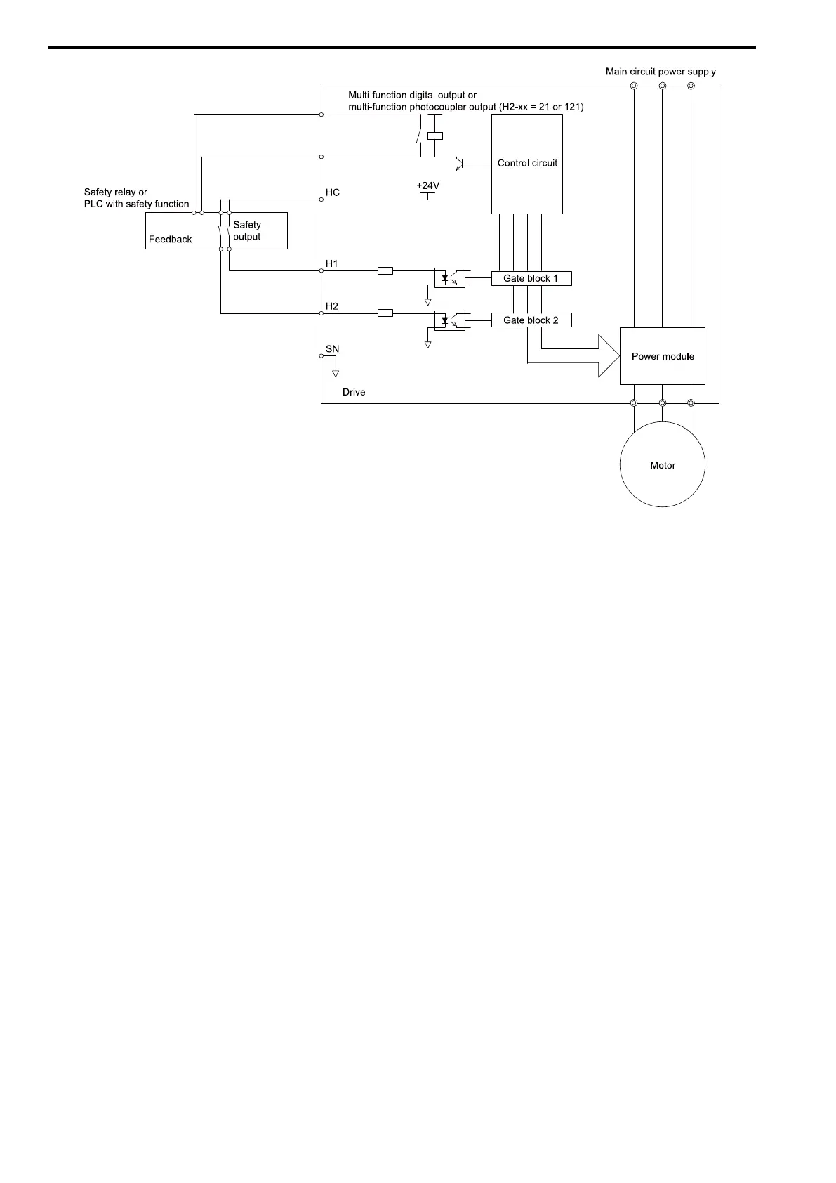 From the terminals HC-SN of drive 1, supply the power for the Safe Disable function for the applicable drives.