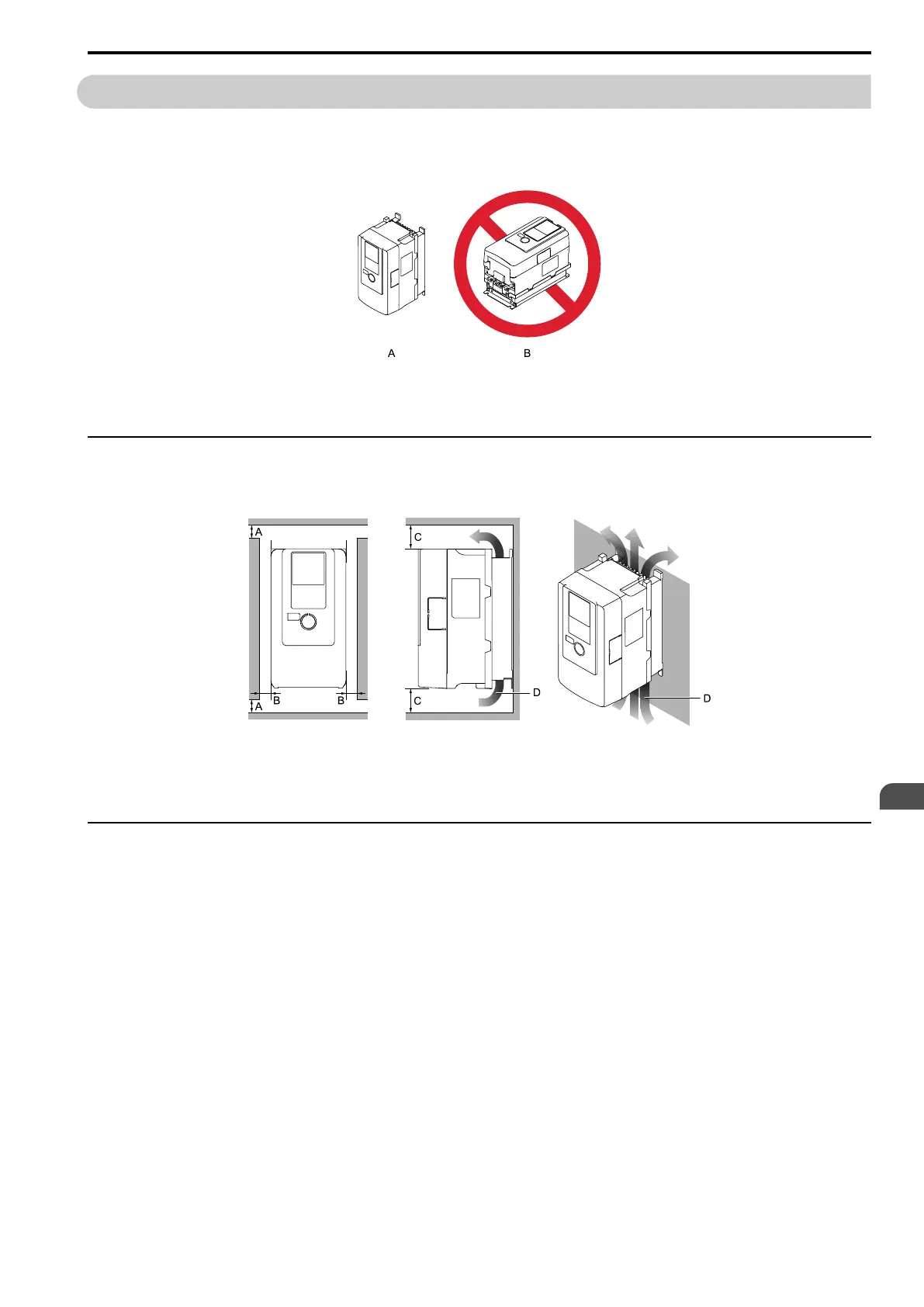 Use the clearances specified in Figure 2.2 to install the drive. Make sure that there is sufficient space for wiring