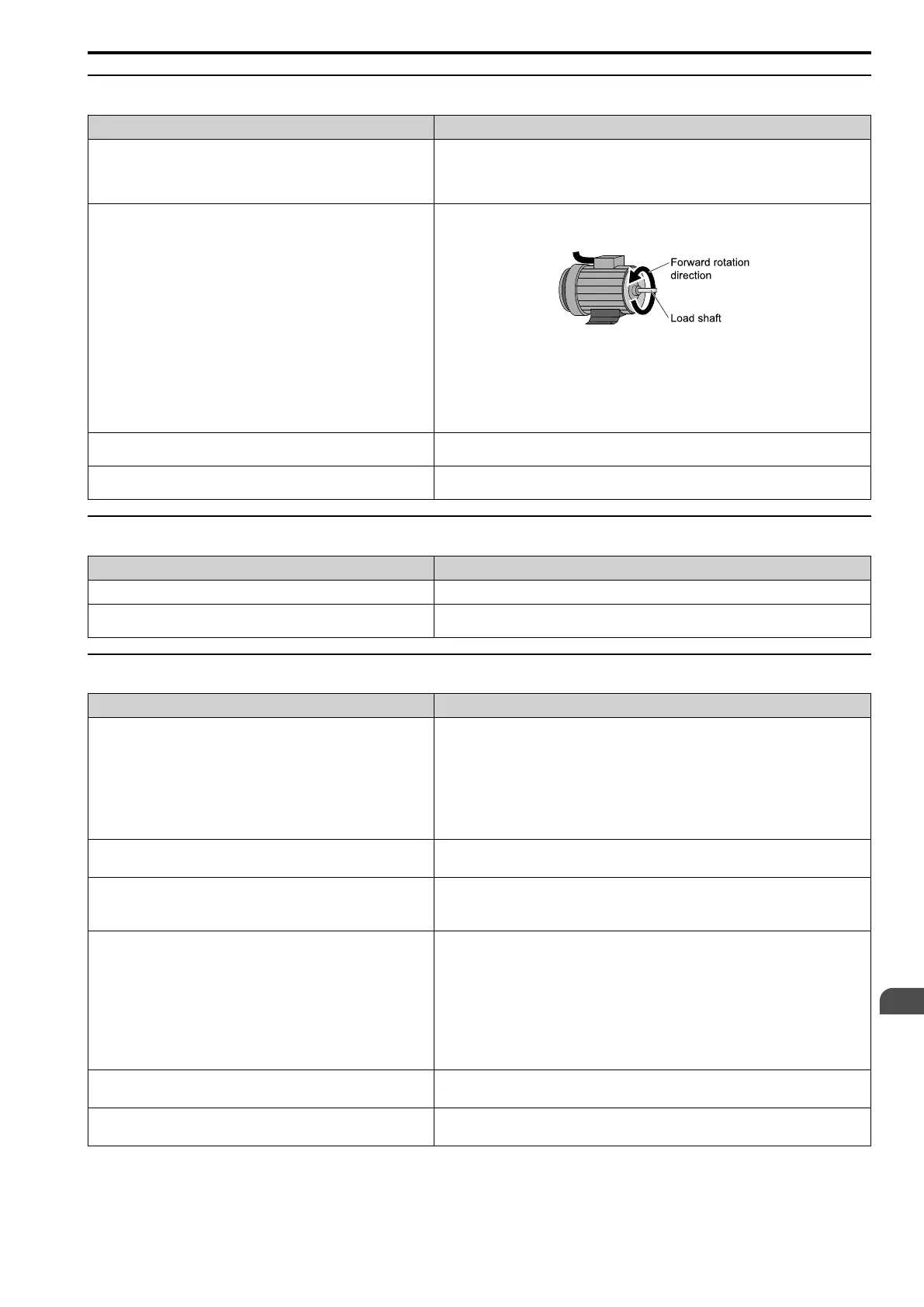 The forward direction for the motor is set incorrectly. • Connect drive output terminals U/T1, V/T2, and W/T3 in the correct sequence to agree with