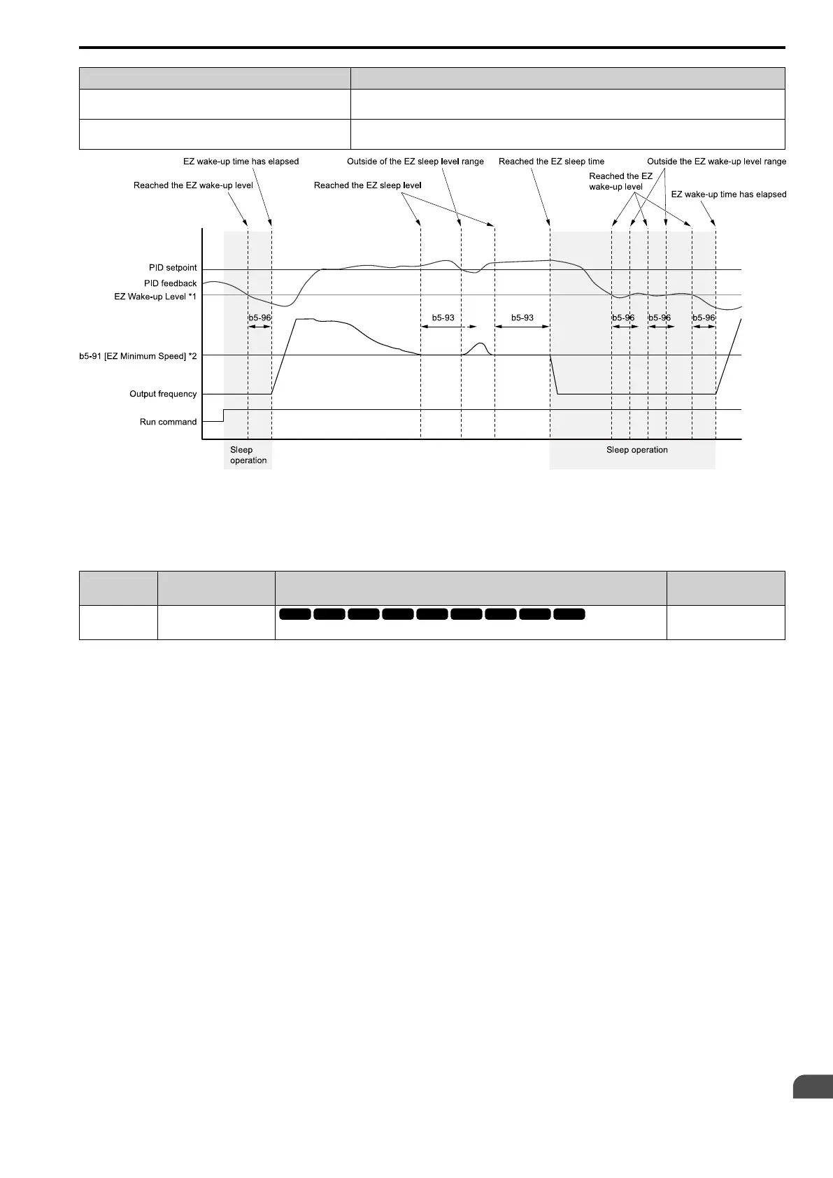 b5-95 = 1 [EZ Sleep Wake-up Mode = Setpoint Delta] The drive resumes operation from the sleep state when the PID feedback has dropped below the value