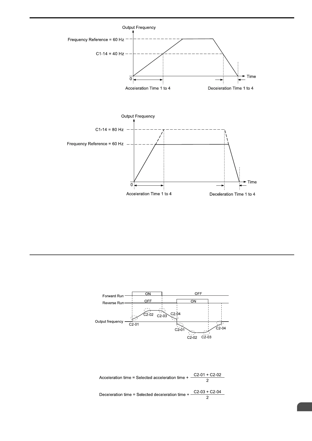 Figure 12.49 Example 2: Acceleration/Deceleration Rate (When C1-14 = 40 Hz, E1-04 = 60 Hz, and the Frequency