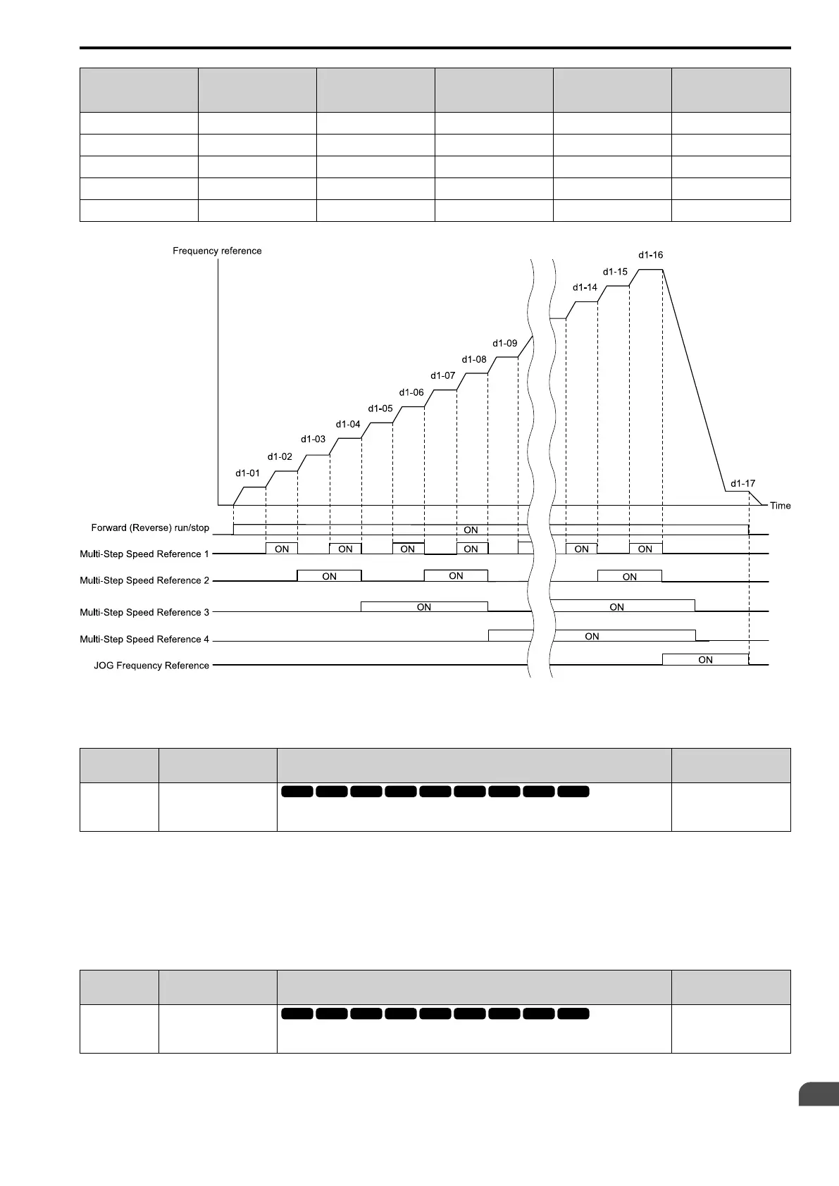 • To set d1-01 to 1-step speed parameter in a multi-step speed operation, set b1-01 = 0 [Frequency Reference Selection 1 = Keypad].