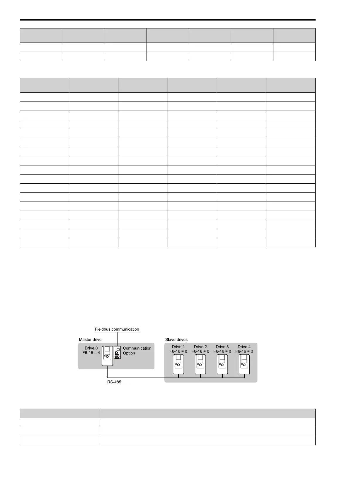 When you install a communication option on the master drive, you can use the RS-485 communication card to