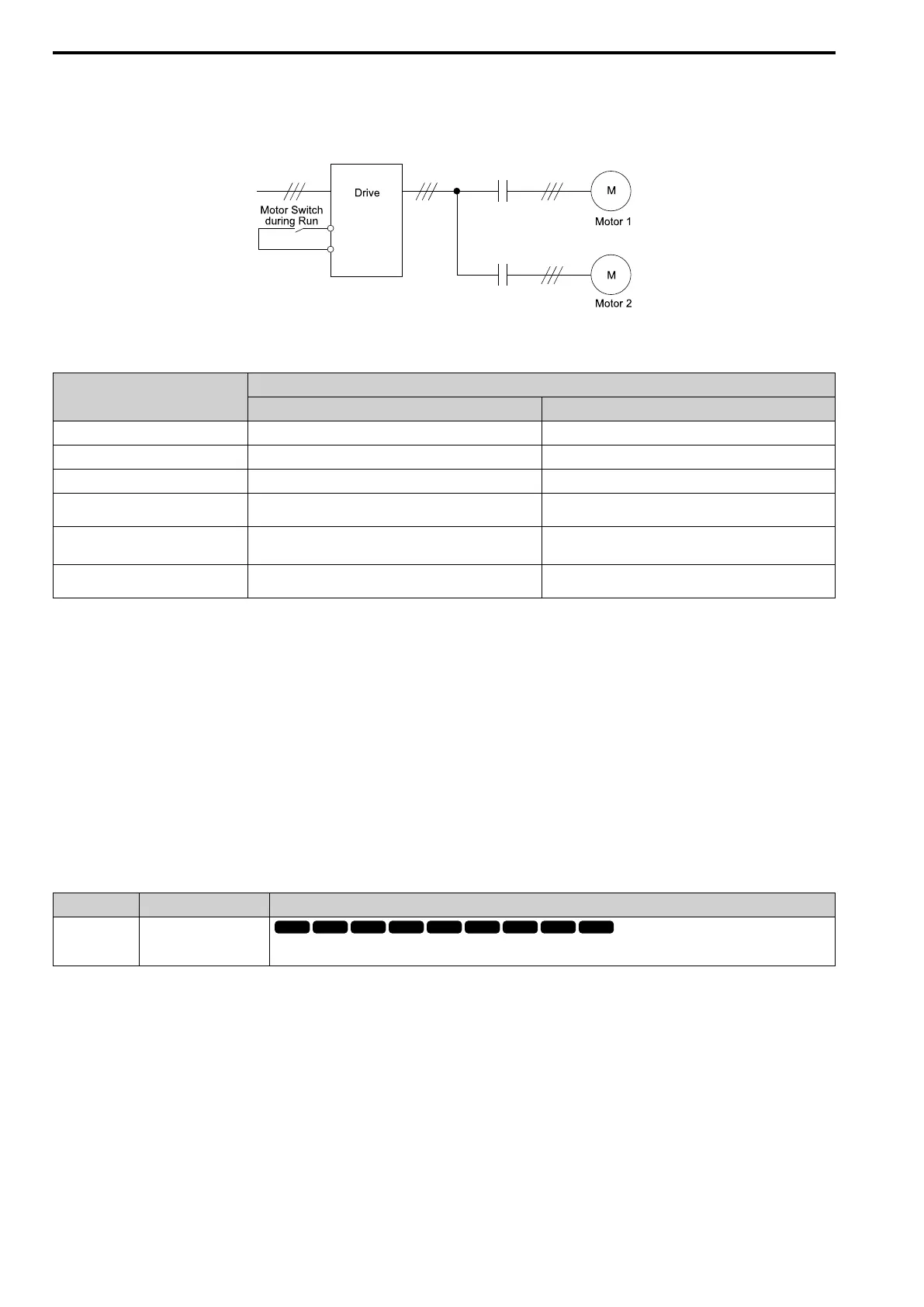 • When you use 2 motors, the drive applies the protective function set in L1-01 [Motor Overload (oL1) Protection] to motor 1 and motor