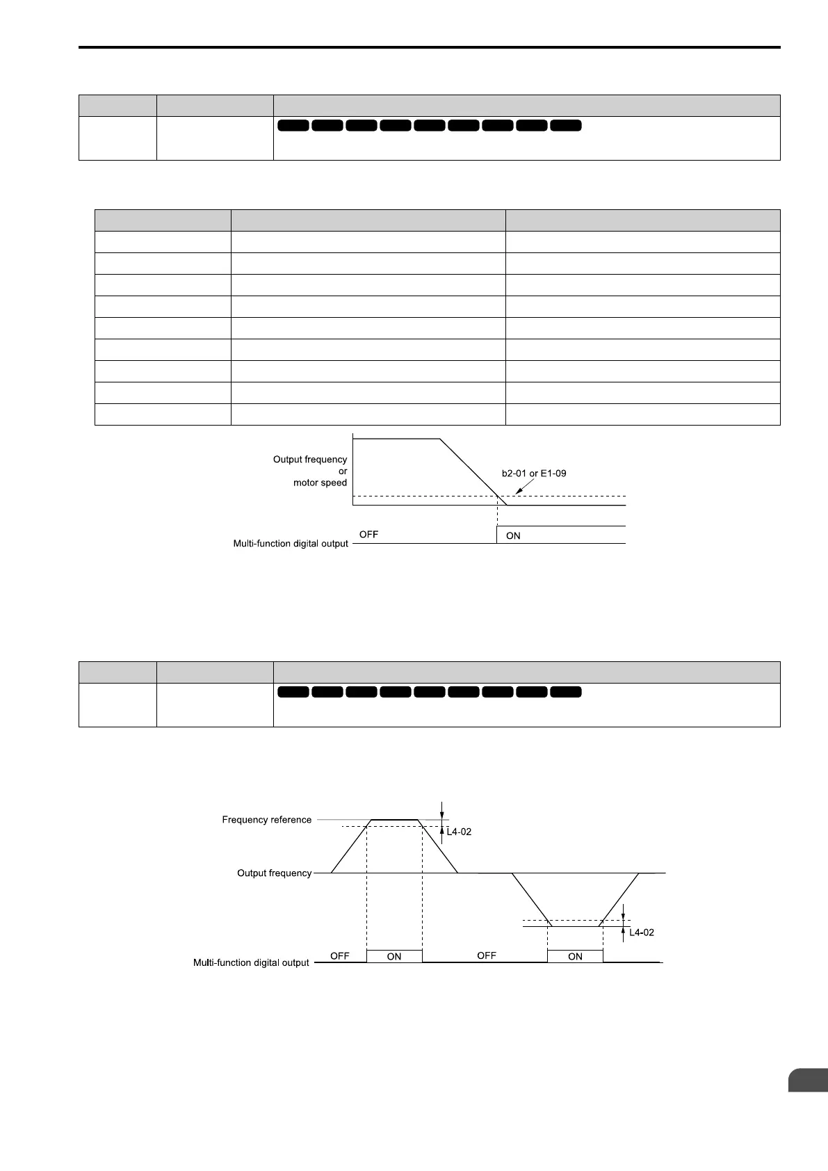 OFF : Output frequency ≥ value of E1-09 or b2-01.