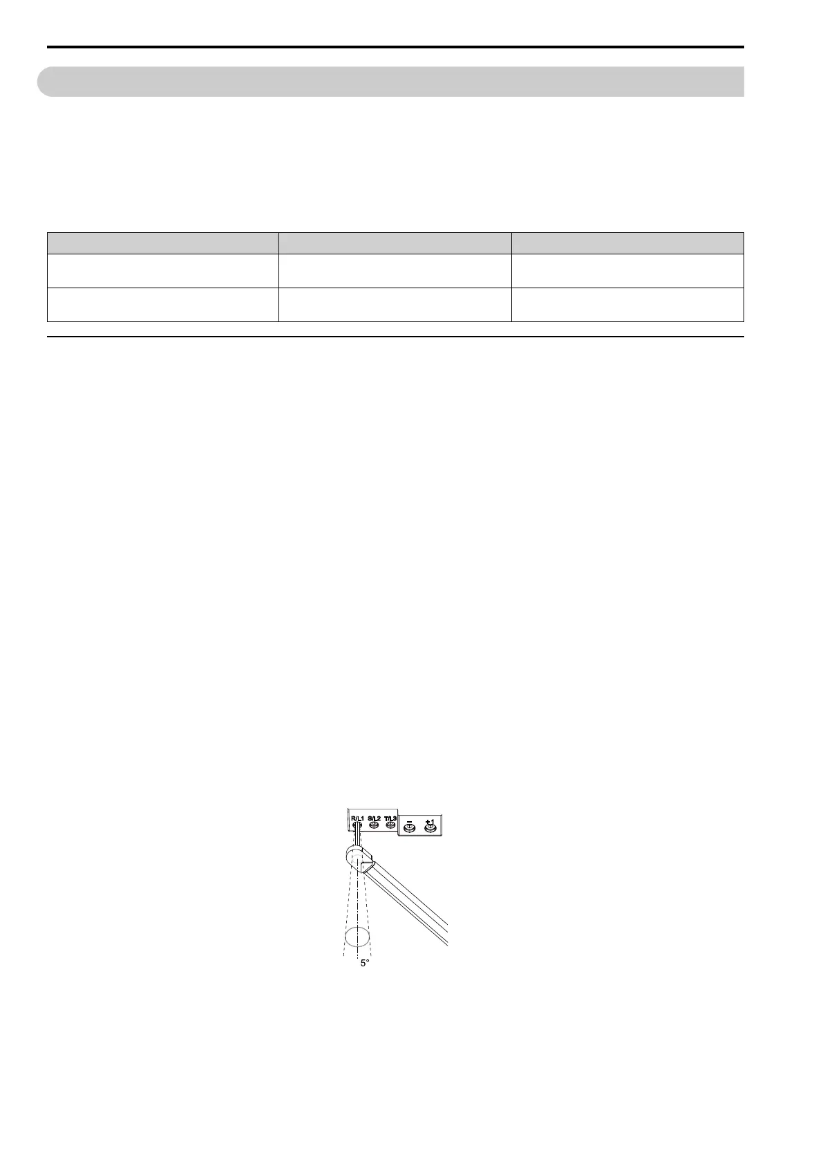 • Do not tighten the terminal screws at an angle of 5 degrees or more. Failure to obey can cause damage to the