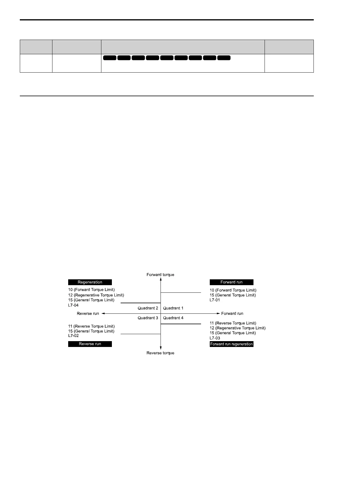 • When L7-01 to L7-04 and analog inputs or communication option torque limits set torque limits for the same quadrant, he drive enables