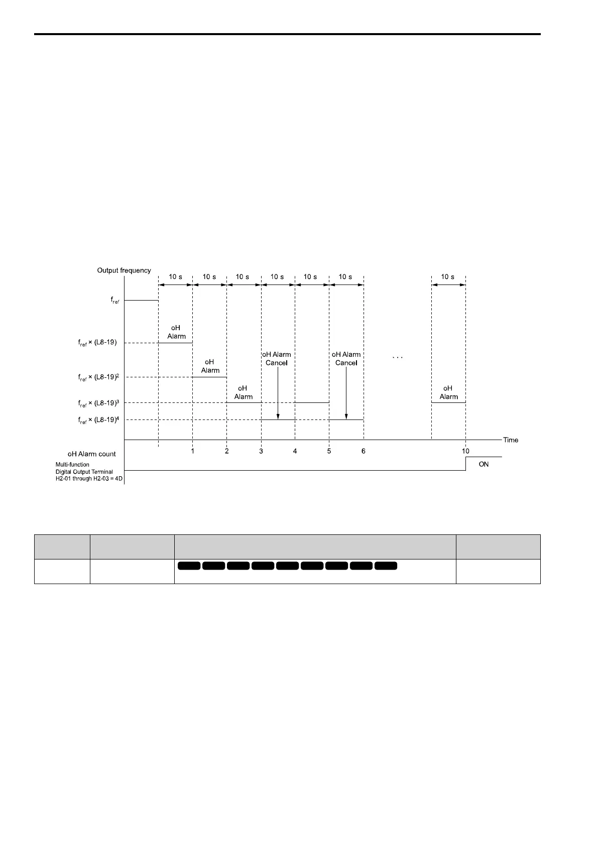 10 times and the alarm continues to be output, the output terminal set for oH Pre-Alarm Reduction Limit [H2-01