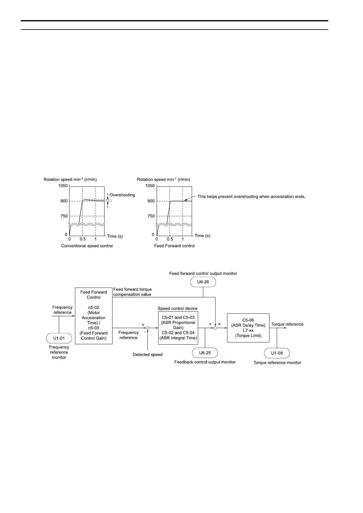 • You cannot use feed forward control to increase responsiveness in applications where you apply loads externally during run at constant