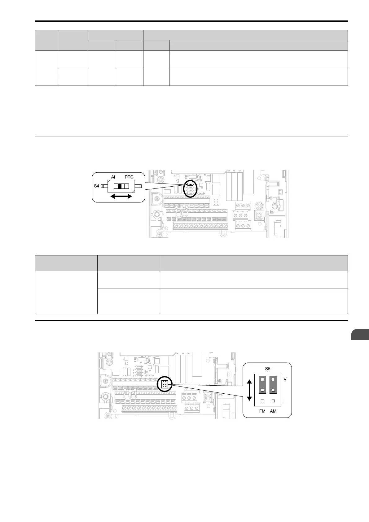 • Set DIP switch S4 to “AI” to use terminal A3 as an analog input (voltage/current) terminal. The default setting for DIP switch S4 is