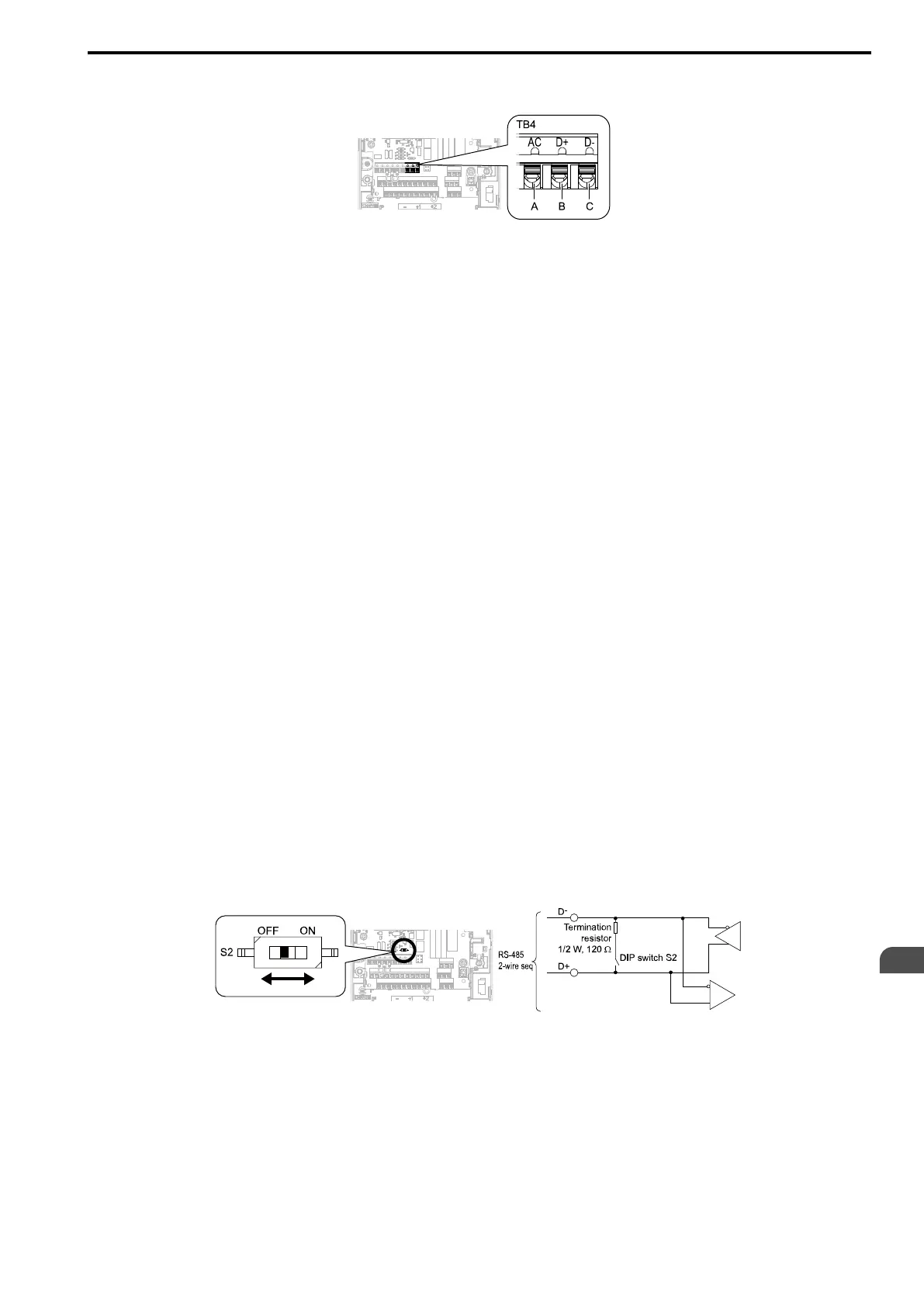 2. Install the termination resistor on the network termination slave drive. Set the DIP switch S2 to the ON