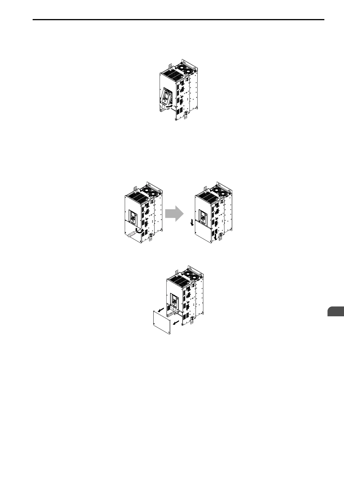 terminal covers for larger drives do not fall. Missing cover screws can cause the terminal cover to fall and cause injury.