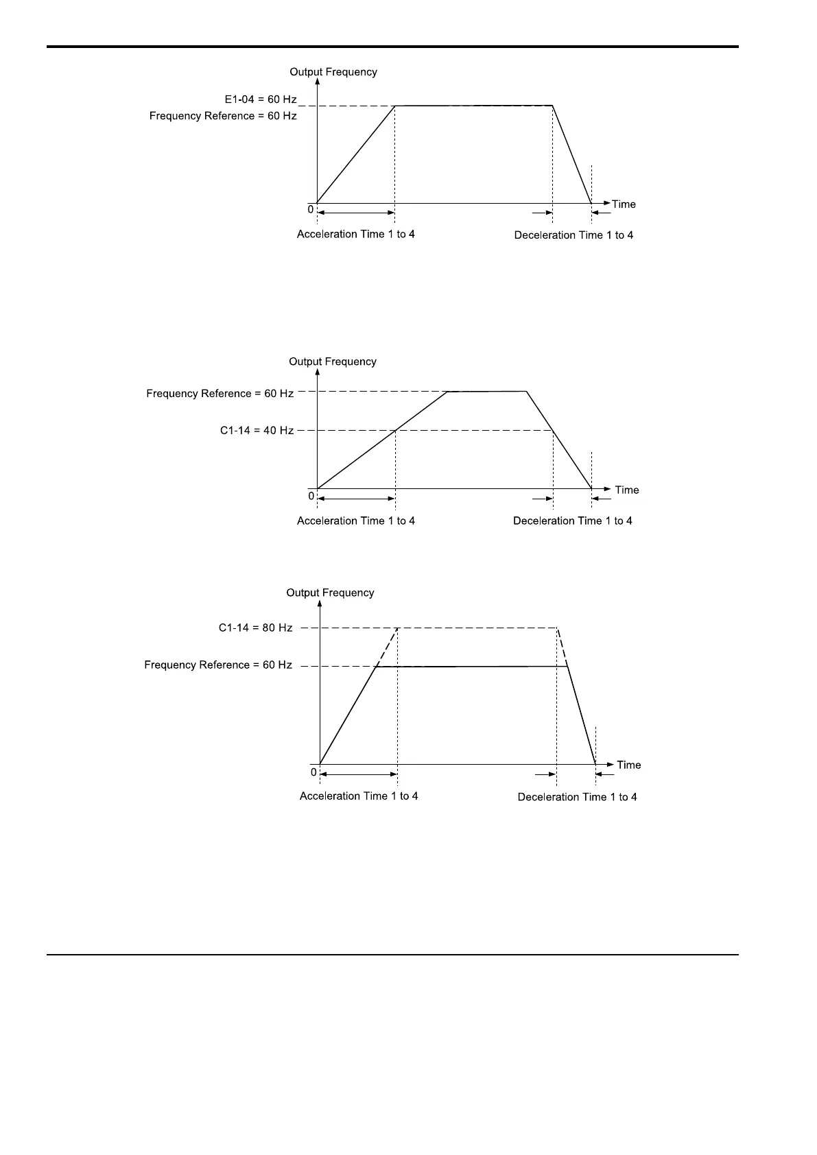 Figure 11.48 Example 1: Acceleration/Deceleration Rate (When C1-14 = 0 Hz, E1-04 = 60 Hz, and the Frequency