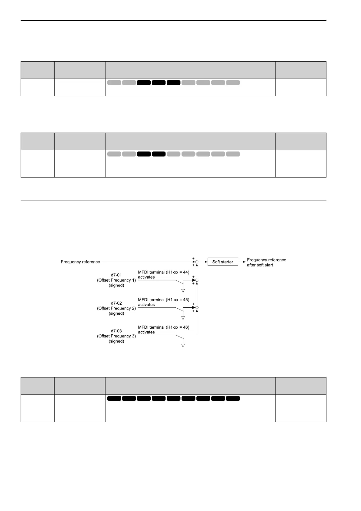 frequency reference and correct the speed. The drive uses the terminal set in H1-xx = 44 to 46 [MFDI Function