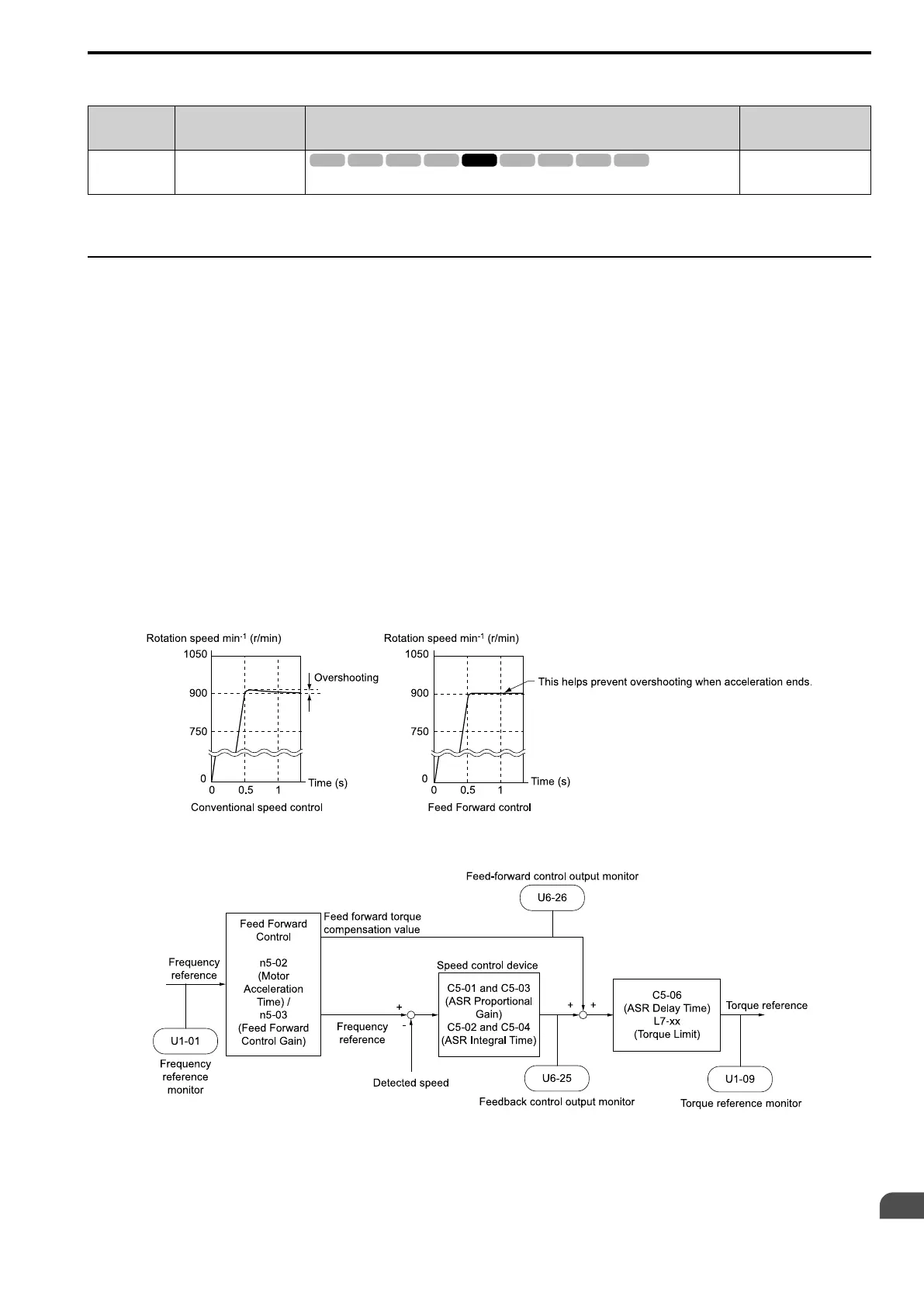 • You cannot use feed forward control to increase responsiveness in applications where you apply loads externally during run at constant