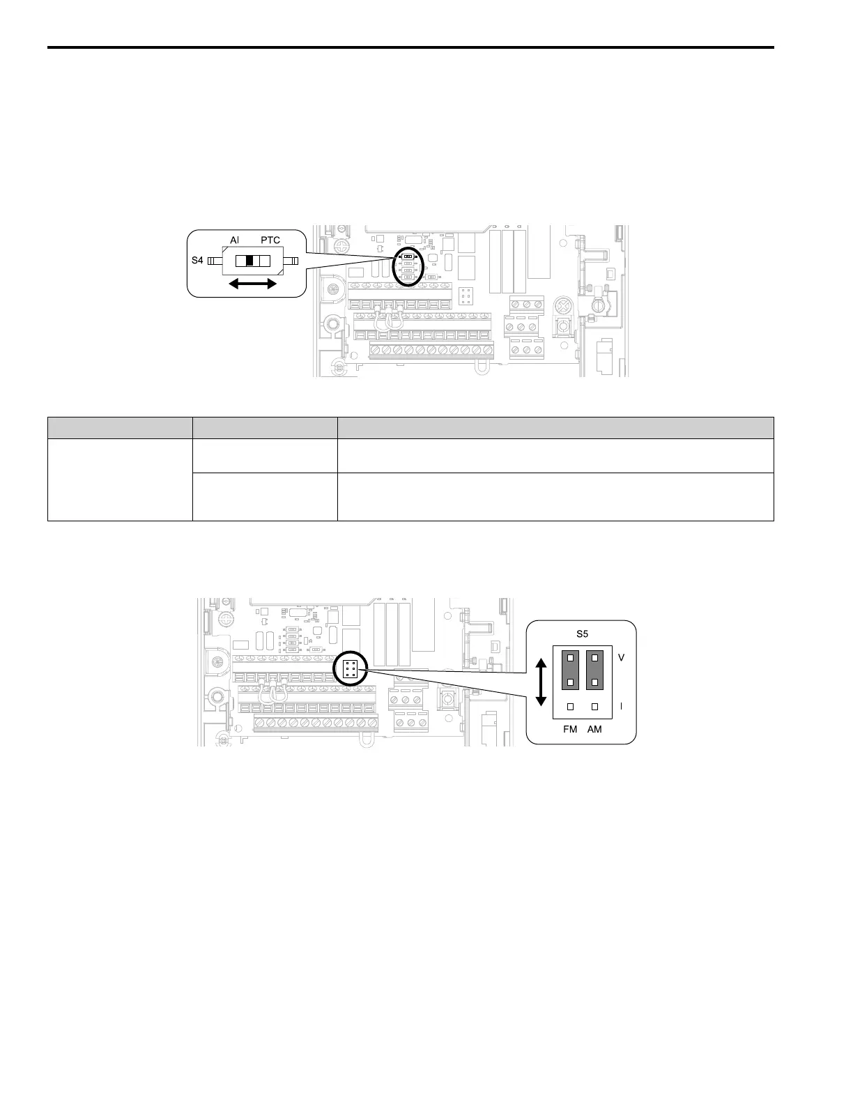 • Set DIP switch S4 to “AI” to use terminal A3 as an analog input (voltage/current) terminal. The default setting for DIP switch S4 is “AI”.