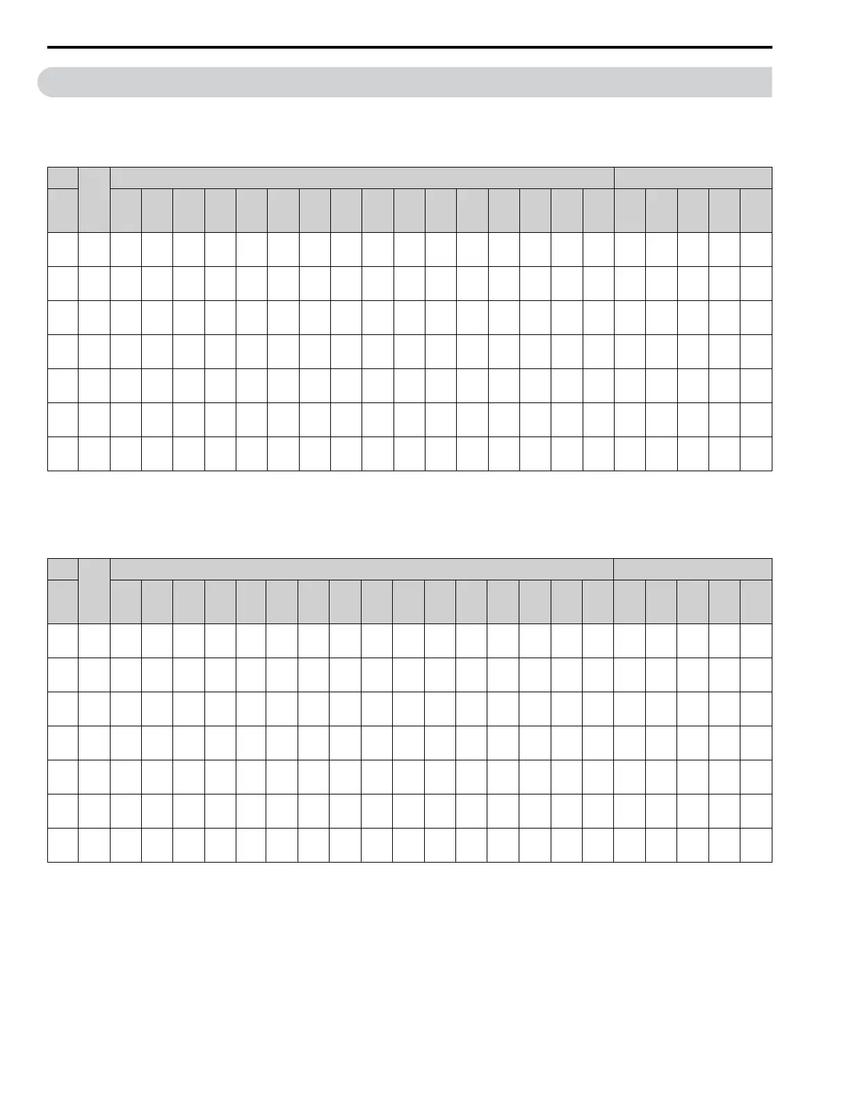 settings for the parameters in these tables: