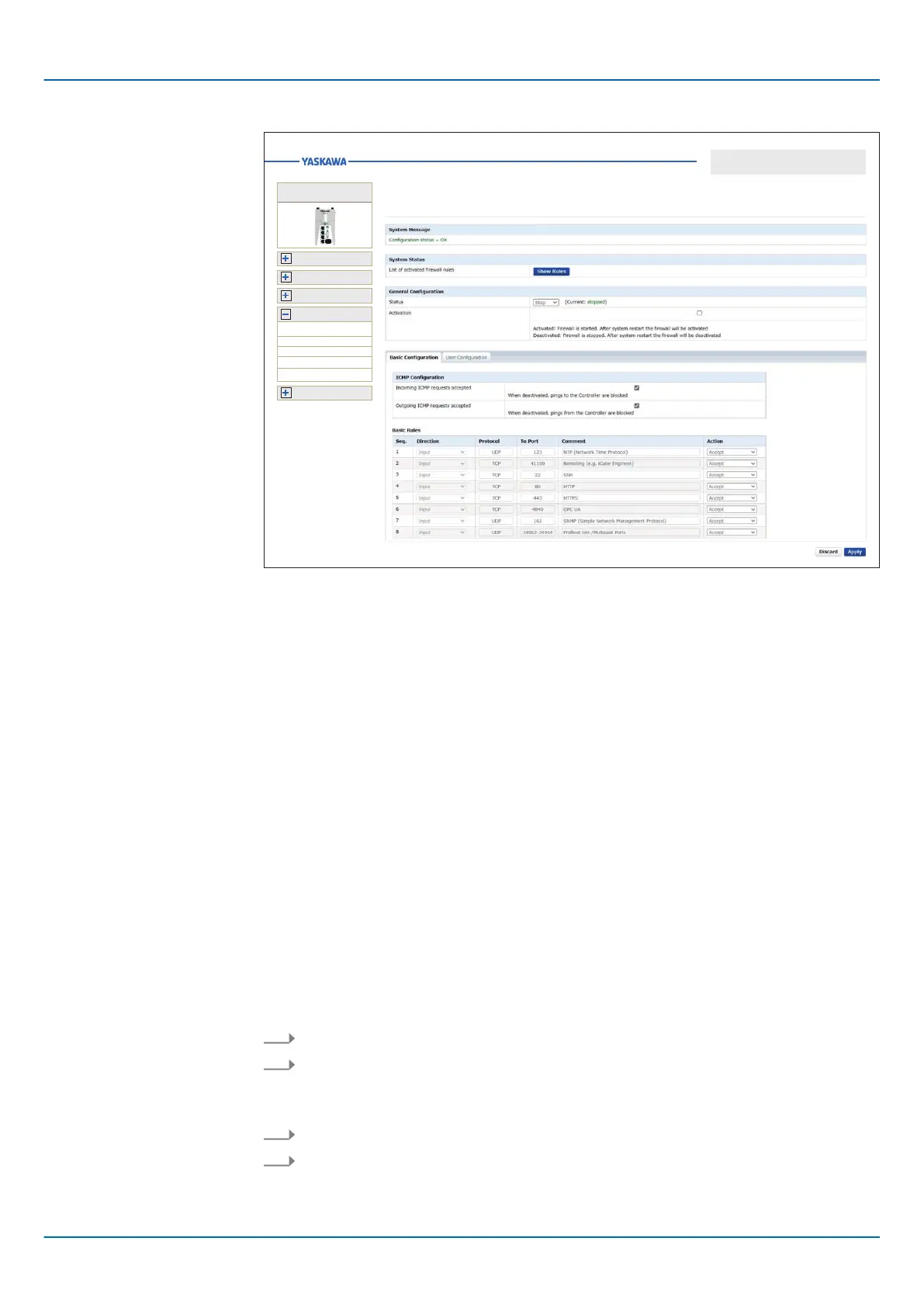 ■ The changed firewall settings are transferred to the CPU with the [Apply] button.