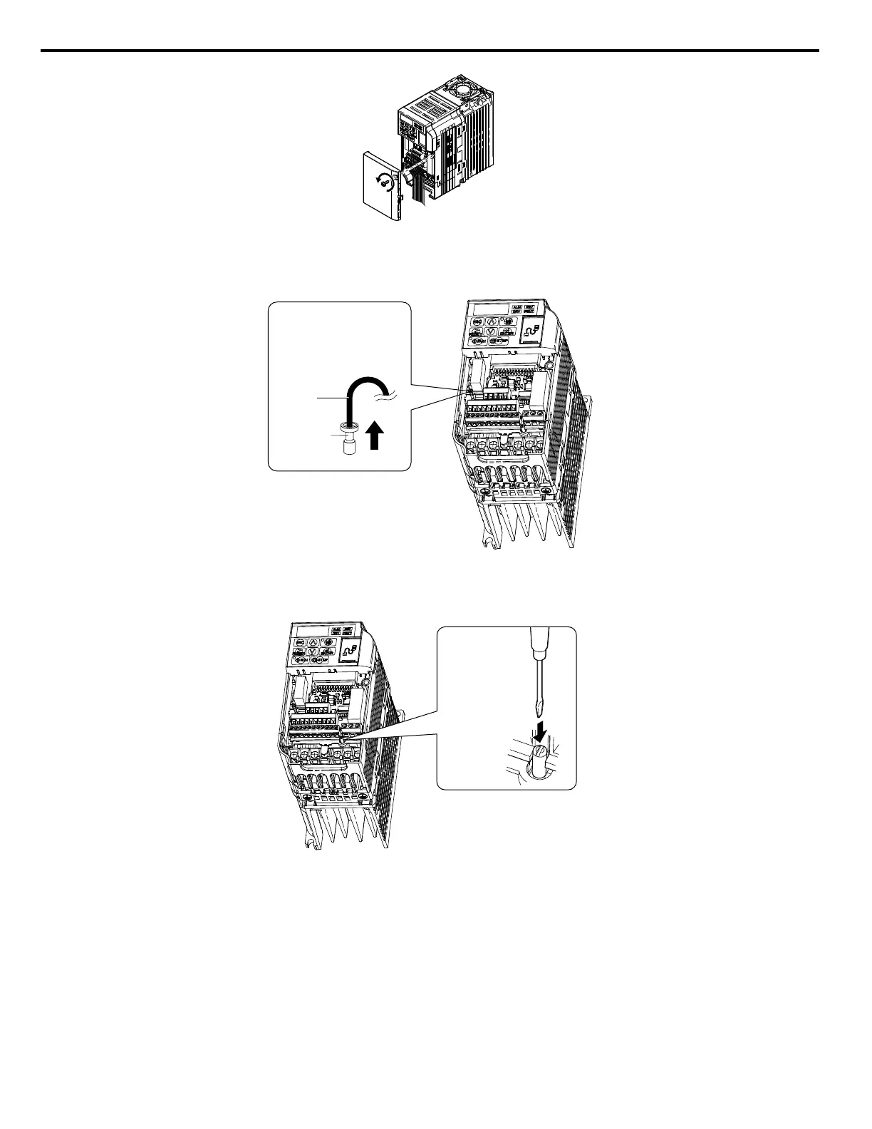 While holding down the locking pin from step 3, slide the removable terminal block in the direction of the arrows in
