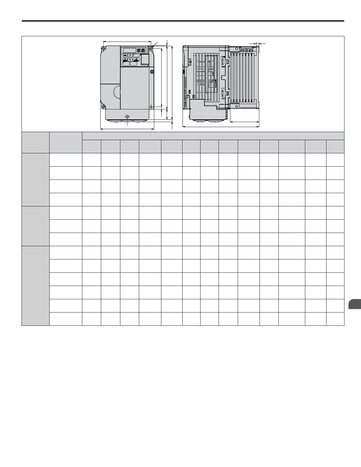 Table 2.3 Dimensions for IP20/NEMA 1, UL Type 1 Enclosure Drives