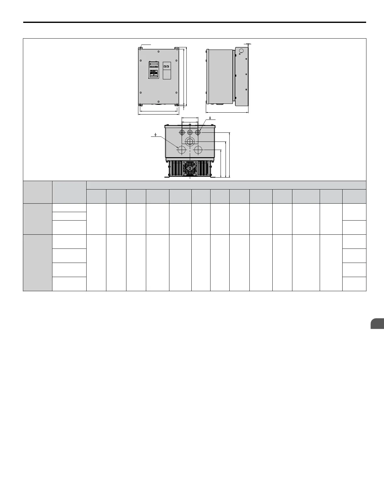 Table 2.7 Dimensions for IP66/NEMA 4X, UL Type 4X Enclosure Drives