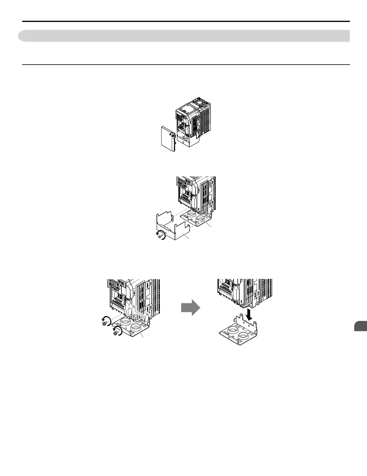 Figure 3.8 Remove the Conduit Bracket on an IP20/NEMA 1, UL Type 1 Drive