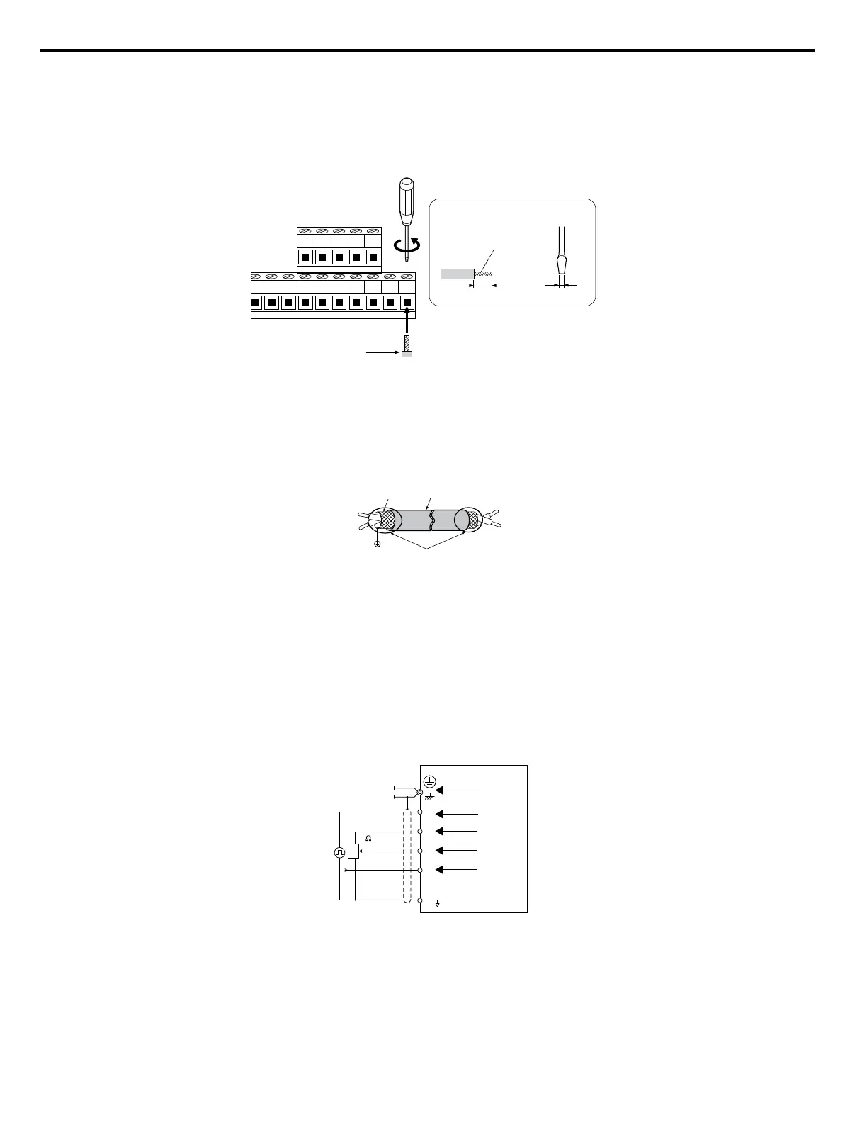 the shield of twisted-pair wires to the ground terminal of the drive.