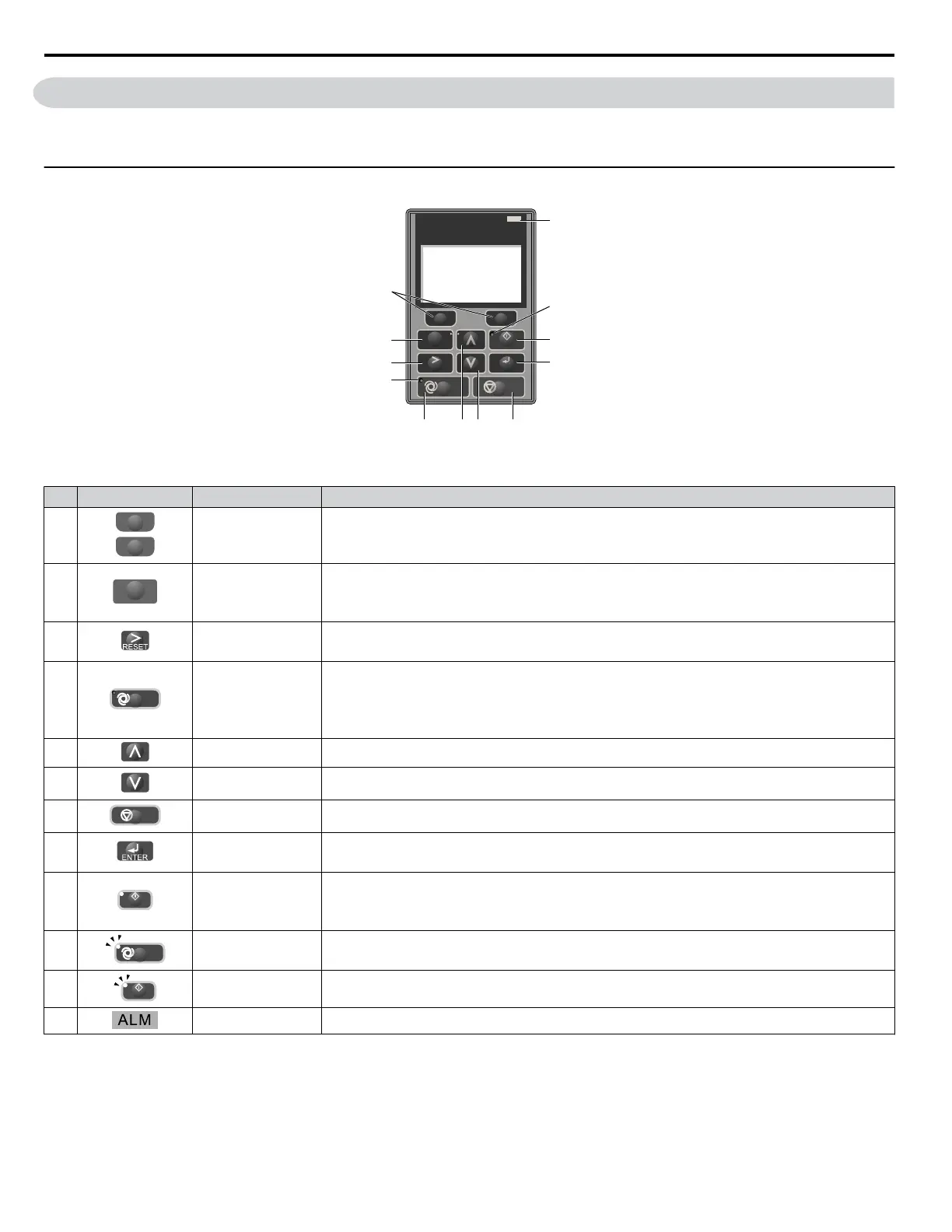 OFF Key Follows the stopping method set in b1-03 to stop drive operation.